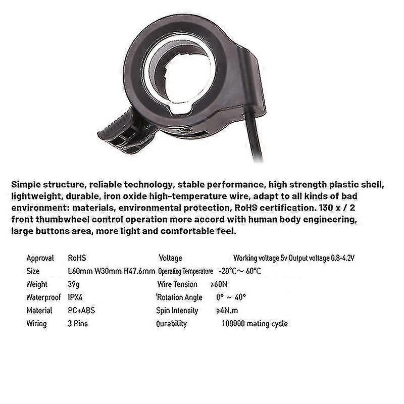 Electric Scooter Bicycle Thumb Throttle 3 Pin Waterproof Sm Connector