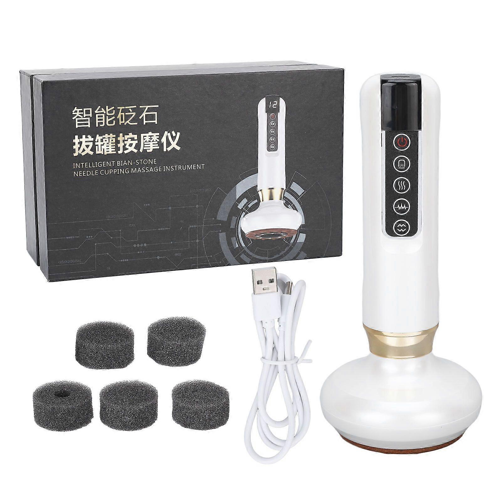 Features1Pain Relief: Bianstone resonance, deep conditioning, natural Bianstone, combined with 8 steel balls to massage energy into the body to relieve soreness. 2Painless: Upgrade the pressure relief and painless jar, skincare from the inside to the outside, care for the skin tissue, the whole process is painless, soothing and non irritating. 3Strong Suction: 12 gear adjustable suction, strong suction to release Sha in seconds, and double filtration inside and outside to prevent clogging. 4Soothing and Relaxing: The electric cupping therapy set uses red light micro electricity, which uses pulsed electric frequency to conduct to the skin, and penetrates layer by layer to drive away fatigue. 5Smart: The electric cupping therapy set lasts for a long time, and the intelligent power off for 20 minutes provides protection for your safety. The Type C port charges quickly.SpecificationItem Type: Electric Cupping Therapy SetMaterIal: ABS, magnet, bianstoneBattery Type: Lithium ion battery (Battery Included)Battery Capacity: 1800mAhEfficacy: Gua Sha is guided by the theory of TCM meridians and acupoints. There are redness granules or dark red bleeding spots and other "sha changes", thereby promoting blood circulation, clearing Sha, conditioning the body, dredging the meridians, improving the metabolism of the whole body, and improving sub health in an all round way.The instrument can absorb the fat layer, stimulate the body's meridians and acupuncture points, at the same time, activate cell vitality, improve the metabolism of the entire body, and dissolve and metabolize fat through the temperature of thermal energy, eliminate excess toxins and moisture, and tighten the skin. Collagen fibers, reduce fat and moisture, and shape body curves.How to UseWhen using this product, select the product function according to your needs, and apply the essential oil to the desired part of the body before use (sensitive skin, please test on the inside of the arm or the root behind the ear before using the essential oil. If there is redness, swelling, itching , please stop using it immediately). When scraping, apply a little essential oil on the desired part, after inhaling the skin, turn the negative pressure on the pinion to one direction and pull it. The scraping of each part is generally not more than 20 times, and the strength is from light to heavy, from small to large.Key Operation: This machine is a rechargeable type, no need for cable operation when it is fully charged, and it cannot be turned on during charging (charging white light number) 00 flashes, and lights up when fully charged. The machine has a 20 minute timing function when working, the digital display shows a 20 minute countdown, and stops working after 20 minutes, and starts automatically after turning off the power. If there is no operation within 5 minutes after power on, the machine will automatically power off.After the power switch is set, short press once to start the machine, the number 00 on the digital display screen lights up, and a 5 minute countdown is displayed after 5 seconds. Automatically shut down when there is no operation; short press to shut down, the white light on the digital display goes out.Negative Pressure: Short press to adjust the negative pressure of the gear, it is the 3rd gear in the default standby mode, with a total of 0 to 12 gears (0 gear means no negative pressure).Heating: Short press to adjust the temperature. The heating function (ie, gear 0) is not turned on by default when it is turned on. There are 0 to 12 gears. For every additional gear, the temperature increases by 1 degree. When the heating function is turned on, the red light of the chassis is on, and the temperature is about 45 .Microcurrent: Short press to adjust the microcurrent strength. When starting up, the micro electric function (ie gear 0) is not enabled by default. When in use, the steel ball at the bottom generates a microcurrent that stimulates human skin cells and tissues (rather than leaking electricity).Decompression: When the negative pressure is turned on, press it lightly and release the air for 1 second, which can easily solve the problem of tank disassembly.When the negative pressure, heating and micro electric functions get to 12 gears, press the corresponding function key in a short time to return to 0 gears. After each adjustment, the digital display screen displays the corresponding functional gear, and after 5 seconds, the 20 minute countdown is displayed again.Package List1 xElectric Cupping Therapy Set 1 x USB Charging Cable 1 x English Manual 5 x Filter Cottons