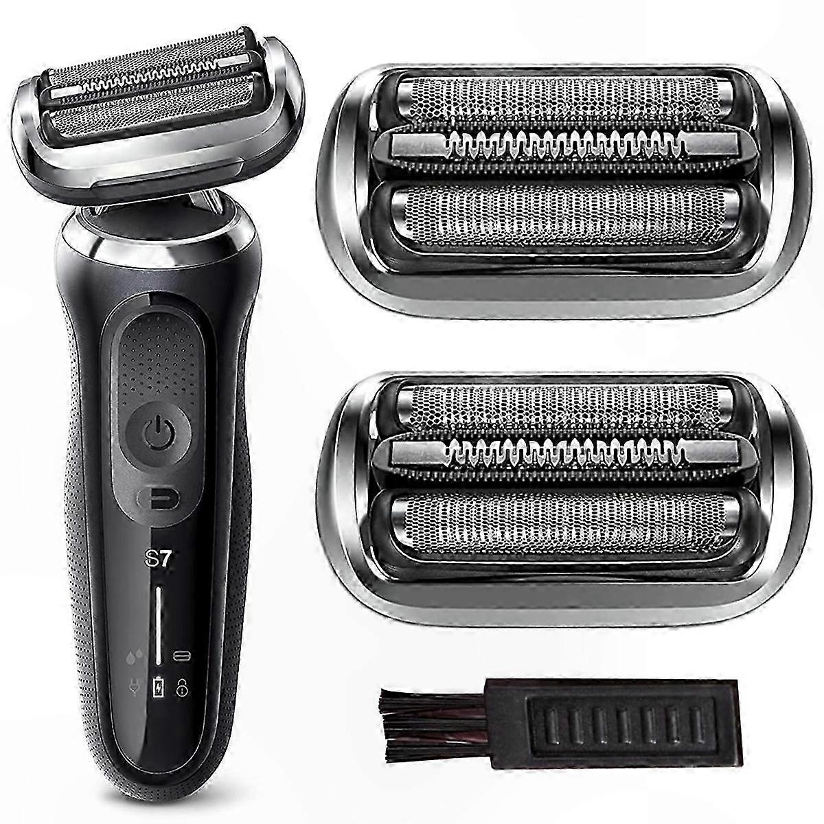 REPLACEMENT FOIL AND CUTTER FOR SERIES 7 SHAVERS: These Series 7 replacement blades are compatible with Series 7 electric foil shavers 7020s, 7025s, 7085cc, 7027cs, 7071cc, and 7075cc. SHAVING PERFORMANCE: The 73S replacement head includes 3 independently floating shaving elements. These flexible shaving units are ergonomically designed to adapt to facial contours for a comfortable and close shave. QUALITY CRAFTSMANSHIP: The S7 replacement head features precise tooth comb technology and mesh design. The comb captures more hair per stroke, while the mesh helps prevent hair pulling, enabling a comfortable and efficient shaving experience. WET & DRY SHAVING, MATERIAL: The S7 wet and dry replacement head is made of high-quality materials with waterproof and rust-resistant properties, allowing use in both wet and dry conditions. It is recommended to replace the 73S Series 7 foil and cutter every 18 months. EASY TO REPLACE, EASY TO CLEAN: Remove the old Series 7 shaver head and click the new 73S head into place. Includes a cleaning brush for easy maintenance. Clean the 73S Series 7 replacement blade quickly by rinsing under running water or use the included brush for a thorough clean. Color: As Shown Material: Plastic + Metal Package Contents: 2 x Shaver Head 1 x Cleaning Brush Only the above package content is included; other products are not included. Note: Light reflection and different display settings may cause slight variations in color between the image and the actual item. Measurement may vary by +/- 1-3 cm.