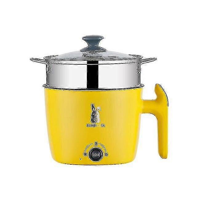 Electric Skillet 1.8L Multi-Function Non-Stick Cooking Pot Mini Hot Pot Noodle Egg Steamer-Yellow