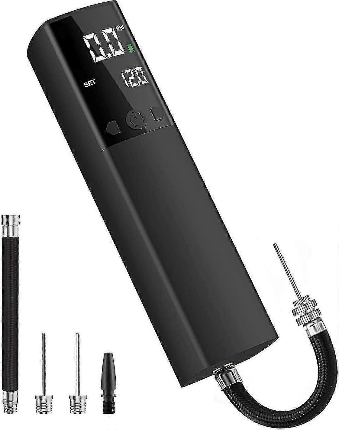 Automatic Electric Ball PumpElectric Ball Pump Designs With Intelligent Pressure Detection And Stop Function,Just Preset The Correct Ball Psi,Press To Start And It Will Automatically Stop Inflating Once The Preset Pressure Is Reached. Smart And Easy To Use.^Accurate Pressure Alignment Built-In Digital Pressure Gauge And Lcd Display, You Can Preset A Very Accurate Psi To Inflate Your Ball ,And Then You Could Get An Accurate Level Of Pressure (Psi) In Balls. Makes Inflating Balls Much Easier Without Wasting Time, You Can Focus, Not On The Ball But, On The Game^Fast Ball Pump-Free Your Hands And Save Your EnergyAir Volume Input: 4L/M, Which Finishes Inflation Of A Ball In Just 1-2 Minutes. No Need To Be Sweating For Pushing Or Pulling Those Manual Ball Pumps With Your Hands. Saving More Energy To Beat Your Opponent^Portable Compact DesignSize: 6.29*1.57*1.57Inch, Weight: 0.55Lb, Fit To In Your Bag, Your Boot Or Even Your Pocket. Allows You To Take This Mini Pump To Wherever You Might Need It To Keep Your Balls Inflated.With Bright Led Lights And Backlight Lcd Display Make It Convenient To Use The Ball Pump At Night Or In Dark PlacesHigh-Capacity BatteryElectric Ball Pump With 2000Mah Lithium Battery, Inflate 30 Balls On One Charge, Come With Micro-Usb Charging Cable, About 120 Minutes To Full Charged^