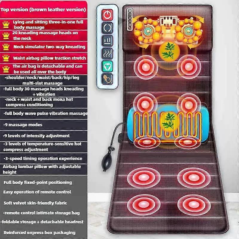 Electric Massage Mattress Full Body with Heating Kneading Vibrating Neck Back Relaxation With Hand Control Lumbar Airbag Pillow