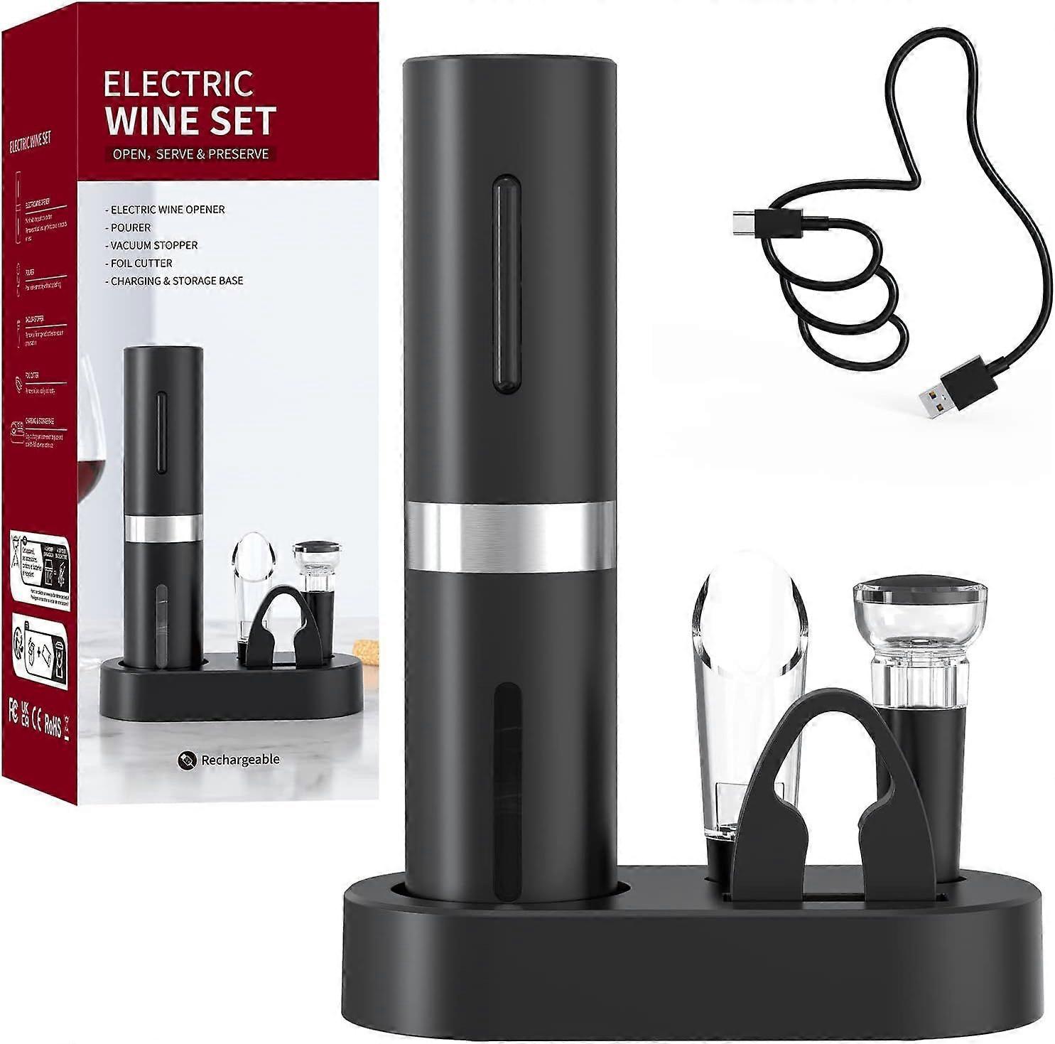 Electric Wine Opener, Rechargeable 5-in-1 Bottle Opener Gift Set with Charging Base, Foil Cutter, Wine Pourer and Vacuum Wine Stopper