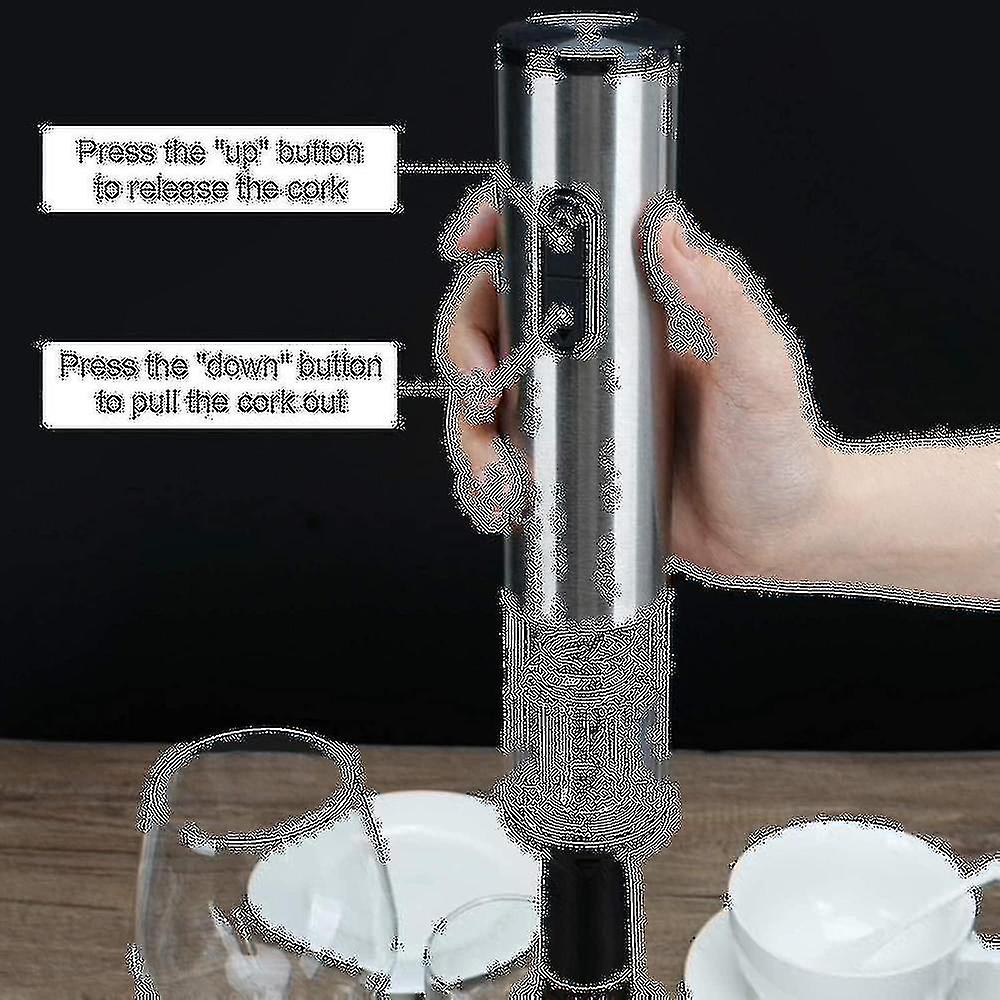 Small enough to store next to your storage rack or fridge when not in use.Convenient to take it out when needed.Perfect Gift for Any Occasion: Our wine opener with smooth Pressing and elegant silver color can be used at any occasions like party, restaurant, bar, and catering .It is also a great energy saving gift for any wine lover.Name: Automatic Wine Corkscrew SetType: with 4 x AA batteries (the battery can be charged, you can use the supplied usb cable to charge)Application: Wine, Red Wine, Bottle With Cork...Colour:SilverMaterial:stainless steelSize:48.5 x 224.5mmPackage