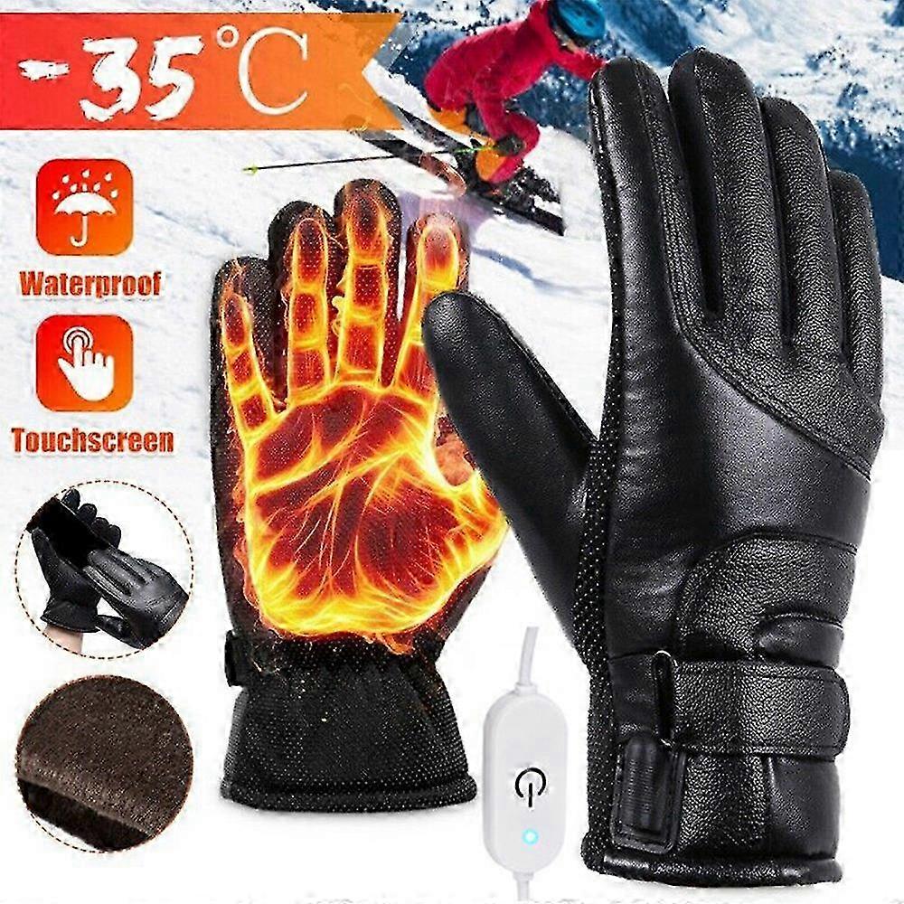 Electric Heated PU Leather Gloves Full Finger Warmer Winter Outdoor Motorcycle Mitten USB Charging