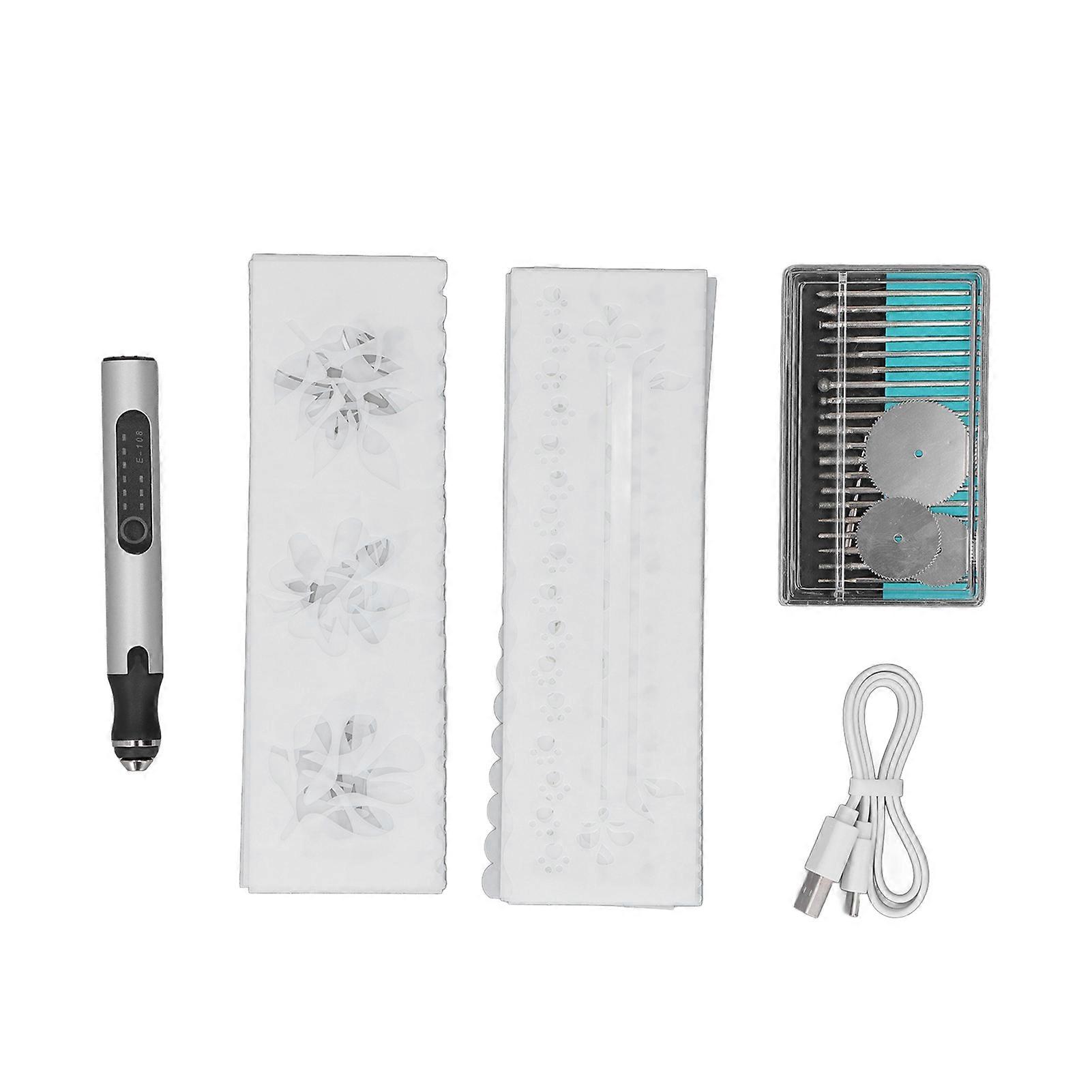 Electric Engraving Pen Set Mini Silver 10W USB Rechargeable Engraving Machine with Battery
