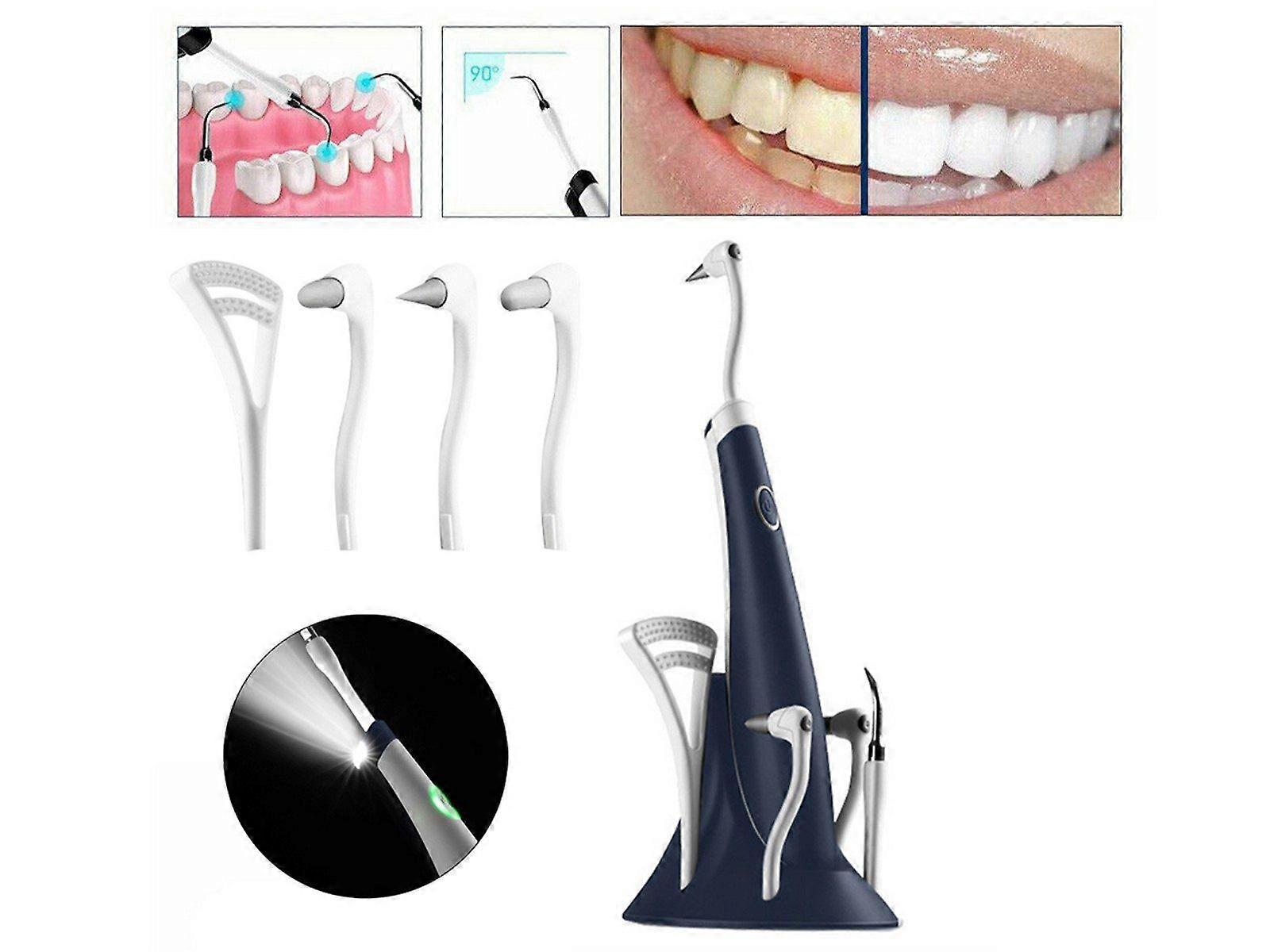 Type: Teeth Cleaner,Ultrasonic Tooth Cleaner, Tooth Grinder, Dental Calculus Remover, Tooth Cleaning Tools, Tooth Polishing Tools Note: Main device and the base are not waterproof, please do not rinse with water. Description: Ultrasonic dental calculus remover can cover hard to reach places to remove plaque, tartar and stains, solve most of the oral problems and protect your teeth and gums healthy. Features: High-frequency vibration, along with professional cleaning head effectively help eliminate the dental calculus, plaque and stains, achieving the thorough cleaning of teeth. 5 cleaning heads with different functions, you can choose according to different needs. LED auxiliary light helps target tartar or stains accurately. One-button opening, easy to operate. Ergonomic design for a comfortable grip. There's a base for easy storage that won't mess up your countertops. Powered by one AAA battery (not included), no need to worry about charging problems. Small size, easy to carry. Specifications: Material: Main Device: ABS Cleaning Heads: PP+TPE Color: Black Product Size(LxWxH): 15.8 x 2 x 2.3cm Power Supply: 1 x AAA Battery (Not Included) Vibration Frequency: 12000RPM Package Contents: 1 x Dental Calculus Remover 5 x Cleaning Heads 1 x Base 1 x User Manual Please note: Due to manual measurement, there might be a tolerance in the product size.