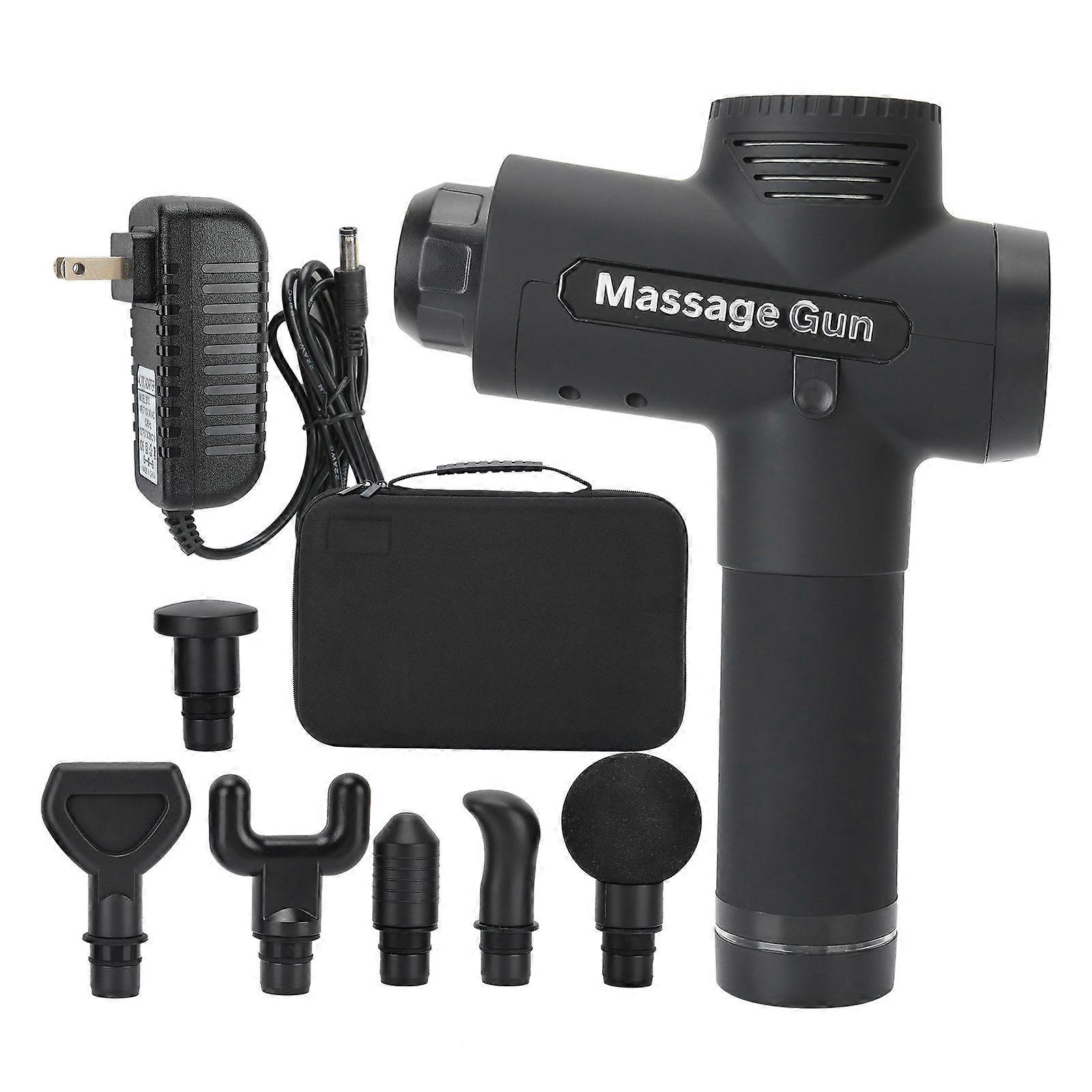 Features1Built?in pressing feedback system, adjust the output power of the motor according to pressing force, more humanized and smarter. 2Brushless silent motor, strong power, low noise. 45db low noise design, noise reduction technology, refuse to disturb the people. 3One?piece closed sweat?proof design, equipped with a concealed wind cooling system, to reduce the direct impact of heat exhaust on the human body, and prevent machine damage caused by dripping sweat and splashing into the body. You can use it with confidence when you are sweating. 46 massage head are available for use, suitable for different areas of muscle and soft tissue, easy to replace. 5Good massage therapy effect, help improve muscle soreness and fatigue, promote blood circulation.SpecificationCondition: 100% Brand NewItem Type: Muscle MassagerMaterial: ABSPower Supply Mode: Lithium BatteryBattery Capacity: 2900mAhMode: 20 KindsFrequency: 50-60HZMotor Speed: 3200r/minProduct Size: Approx. 24.5 x 19 x 6cm / 9.6 x 7.5 x 2.4inThe function of each massage head:Cylindrical head: suitable for impacting deep tissues, such as meridians joints.Spherical head: suitable for massaging arms, lower back, buttocks, thighs and muscles.U-shaped head: suitable for massaging the neck and vertebral column achilles tendon.Flat head: suitable for relaxing and shaping various muscle parts.Finger-shaped head: suitable for all muscles such as palms and soles.Shovel shaped head: suitable for most muscle groups. Relieve vibration and prevent damage to sensitive muscles.Usage: 1. Power equipment: turn on the power equipment by mobile power, put the power switch in the ON position, press the power button once to turn on the equipment to the first level, and then turn on the equipment to the target speed level you can withstand between 1-20. Press the power button again to turn off the device. The blue LED indicator will indicate the corresponding power level.2. Massage the required body parts at the required speed as needed.3. To remove the battery, please gently press the battery release button with your thumb. Pull the battery/handle down firmly with the other hand.Note: 1. Do not touch or press the massage head during operation.2. Do not impact the joints.Fascia relaxation is generally only applicable to muscles and soft tissues. If you directly impact the joints, it is almost the same as knocking the joints directly on the stone, which may cause joint damage.3. Not all parts are suitable for use. Fascia guns are not recommended for the neck, chest, abdomen, and armpits, where the muscle thickness is thin, and the parts close to the organs and aorta.4. It is not that the longer the time, the more painful the more effective, the use body feeling should be maintained at 60%-80% soreness, and the use of the same location should be controlled within 1 minute.5. Do not use this product for infants, minors, pregnant women, persons who wear pacemakers, have broken bones, or have metal contents in their bodies.Package List1 x Muscle Massager  6 x Massage Head  1 x Power Adapter  1 x English Manual  1 x Storage Box