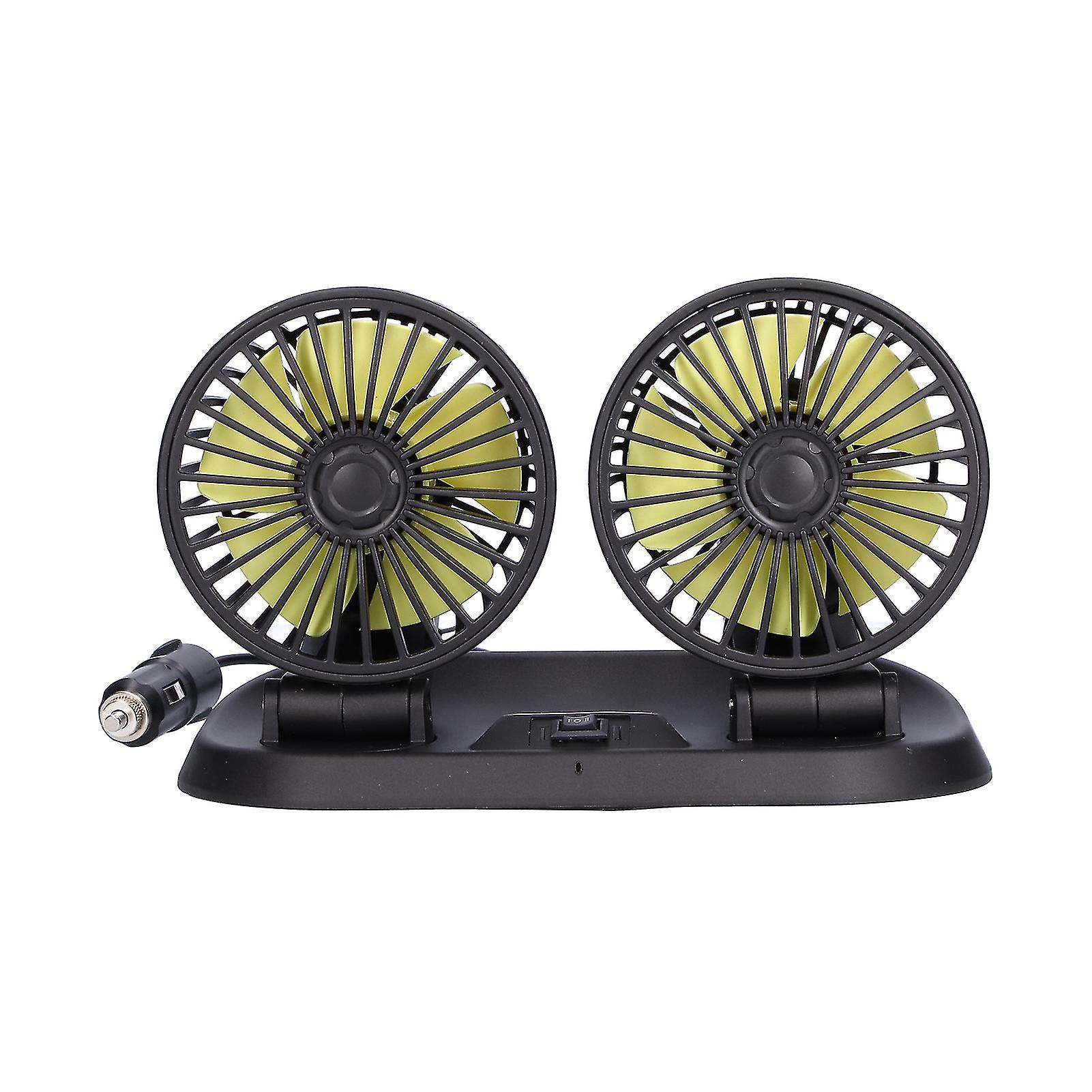 Electric Car Fan 360° Rotatable DoubleHead 5 Blades 2 Speeds Cooling Fan for Car Vehicles(12V (Yellow Fan Blade) )