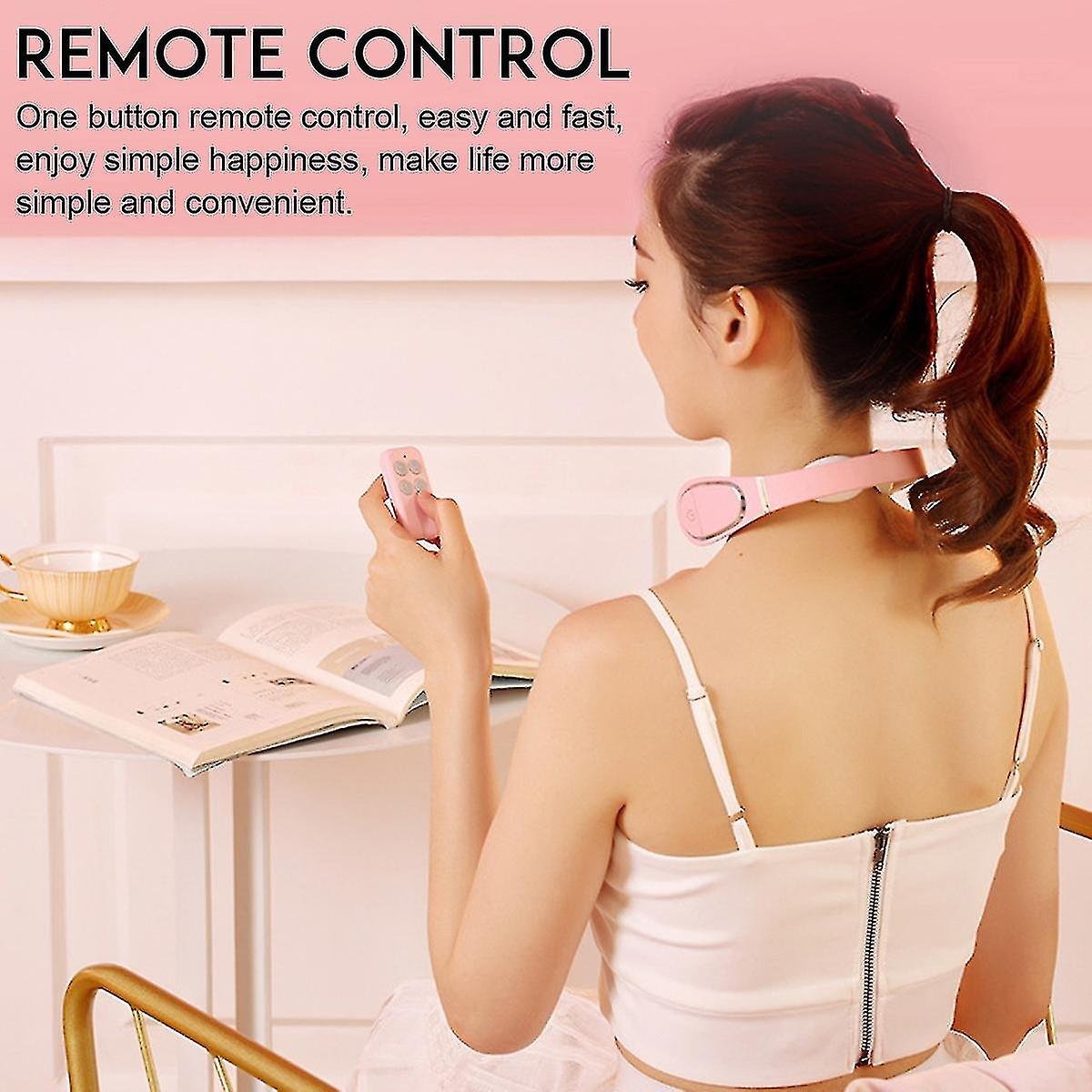 Electric Neck Massager 1 Remote Control Model: K-1040 Material: ABS + Silicone Optional Color: Pink Input: DC 5V Quiescent Current: 100UA Maximum Power: 5W Battery: Polymer Battery Capacity: 1000 mAh Timing: 15 minutes to charge Interface: MICRO- USB Product size: 139 x 44 x 150 mm Intensity adjustment: 15 levels DC heating temperature: 42 Massage modes: hammering mode, acupuncture mode, kneading mode Features: adjustable mode and intensity, 3 modes convertible With 15 adjustable intensities, you can choose any mode or intensity according to your needs. Electric pulse massage can repeatedly stimulate nerve acupuncture points, promote metabolism, relax muscles, eliminate soreness, etc. 42 Warm Hot Compress is an intelligent constant temperature hot compress. The heat penetrates into the skin evenly and is as comfortable as a hot towel, restoring health to the shoulders and neck. Super long battery life 1000mAh large battery capacity, once a day for 20 minutes, can be used continuously for about 6 days, curing your endurance anxiety. One-click remote control, easy and fast, enjoy simple happiness, making life simpler and more convenient. The 360-degree floating electrode fits up and down, flexibly, and can be close to the painful area in multiple directions without any discomfort on the neck. It combines a variety of traditional Chinese medicine massage techniques to promote blood circulation and provide a wider massage coverage. 15-minute smart timer, no longer worry about sleep, massage before bed, sleep peacefully, even better. High elastic composite material and high toughness elastic arms can automatically adapt to the neck curve, making it more comfortable to wear, soft, flexible and non-deformable. Packing list: 1 x electric neck massager 1 x remote control
