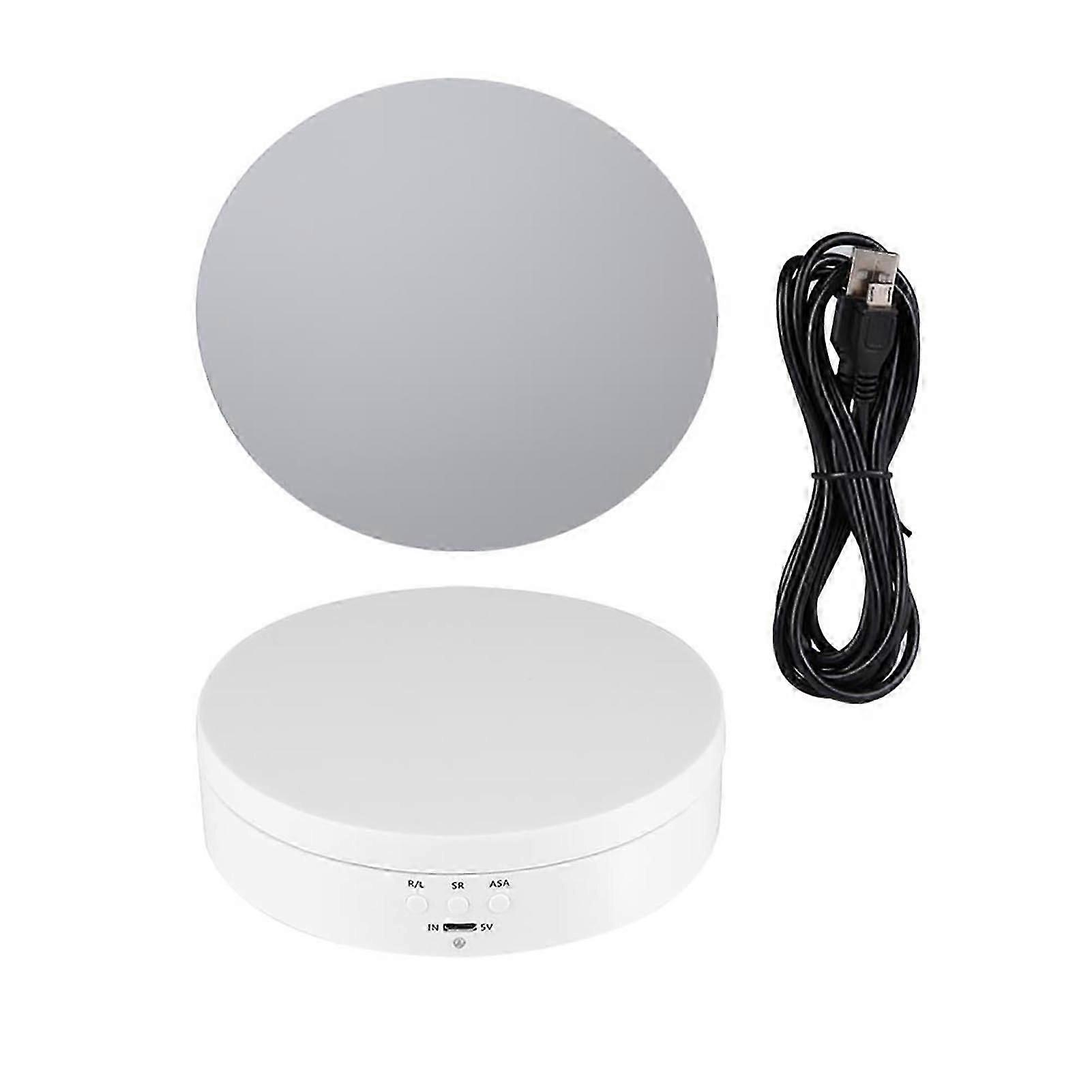 Electric 360 Rotating Turntable Watch Phone Jewelry Ring Glass Mirror Display Stand Holder White