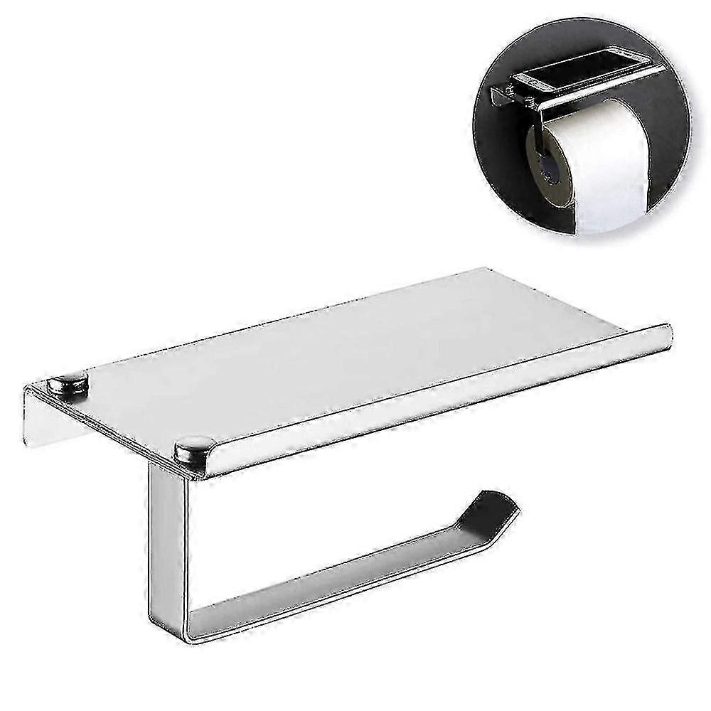 Stainless Steel Toilet Paper Holder with Phone Shelf, Chrome Wall Mount Bathroom Tissue Dispenser
