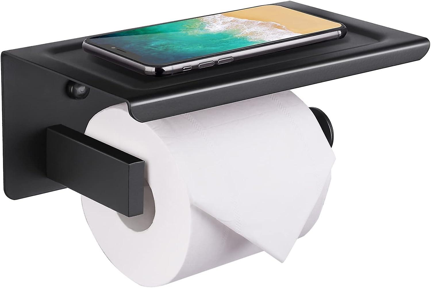 Toilet Roll Holder with Phone Shelf, Toilet Paper Holder for Bathroom Washroom, SUS 304 Stainless St
