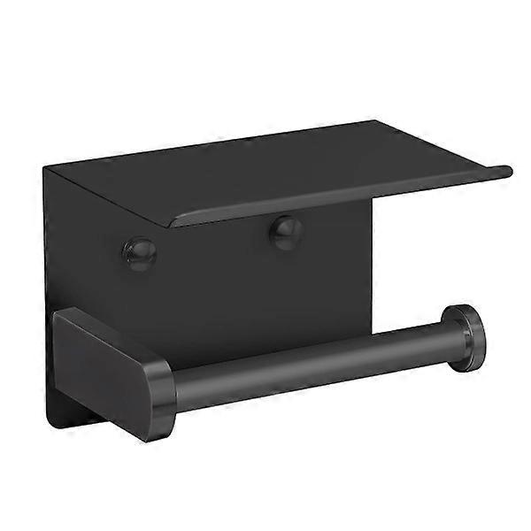 Self-adhesive Toilet Paper Holder with Phone Shelf SUS 304 Stainless Steel Wall Mounted Toilet Paper Roll Holder - Rustproof and Bathroom - Black