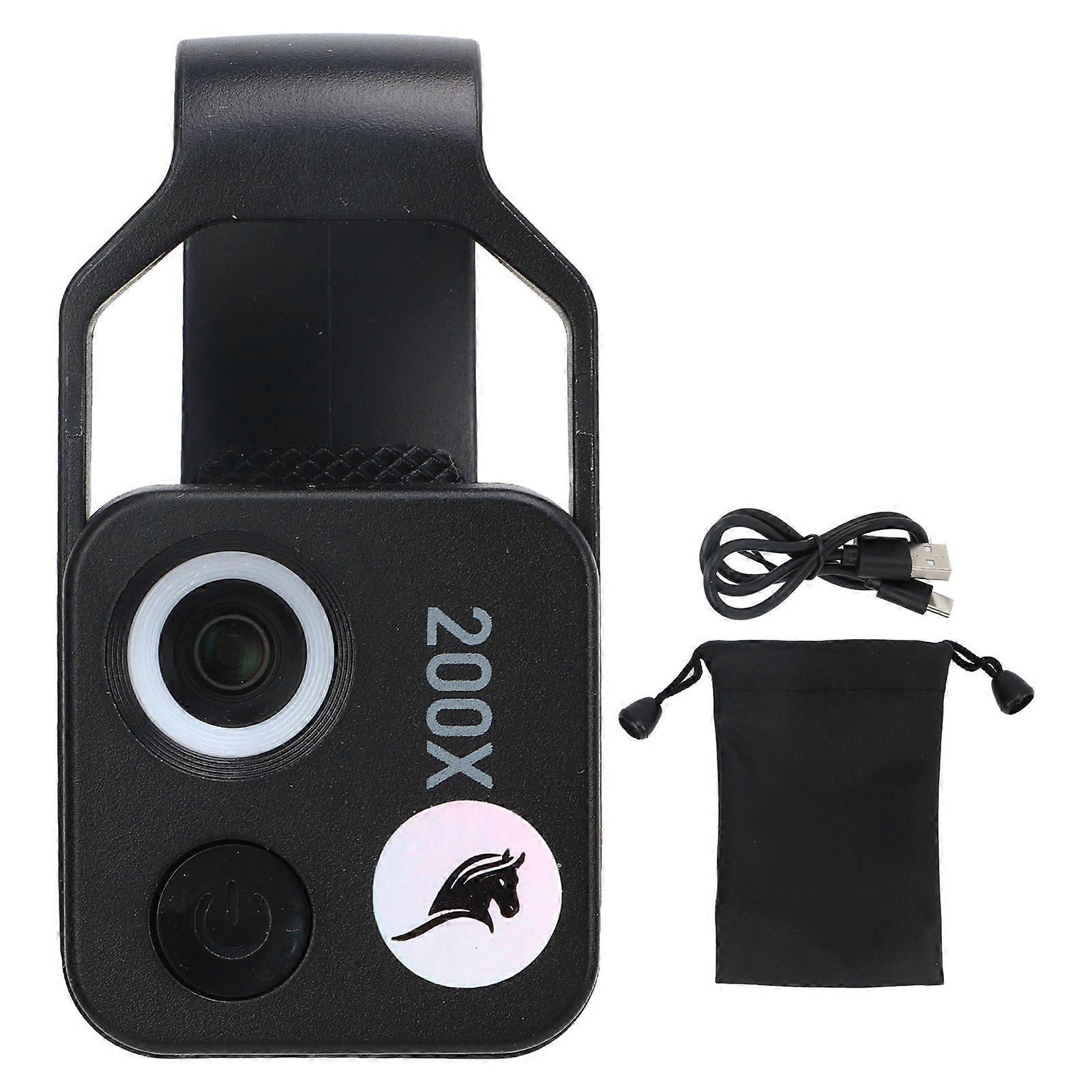 Feature:1. 200x with Light: The 200x phone microscope comes with 2 level brightness adjustment of the light, enabling clear 200x magnification observation2. For Mobile Phones: The 200x pocket microscope is a microscope specially designed for mobile phones, suitable for all mobile phones on the market3. Scope of Application: The 200x phone microscope is suitable for children's biological learning education, observation and learning of animals and plants, flowers, insects, rocks, specimens, etc4. Simple Operation: The microscope with phone clip is used directly, no APP is required, the operation is simple, and can be fixed on the mobile phone5. Small and Portable: The portable phone microscope is small and portable, which can meet your needs that you want to play micro photography at any timeSpecification:Item Type: Phone MicroscopeMaterial: ABS, PCMagnification: 200 TimesSize:Approx. 68 x 35 x 28mm / 2.7 x 1.4 x 1.1inFocusing Distance: The Shooting Distance is 0.3mm/0.01in from the Outer Appearance of the Phone MicroscopeNumber of Lens: 4 Pieces 4 GroupsInput Current: 5V/1ABattery Information: Li Ion Battery 120mAh (shipped with built in battery)Battery Working Time: 2 to 4 HoursCharging Time: About 1HBrightness: 85 to 150lmNumber of Lamp Beads: 6pcsColor Temperature: 6000 to 6500KCharging Port: USB Type CClamping Distance: the Longest 12mm/0.5in, the Shortest 4mm /0.2in.Package List:1 x Phone Microscope1 x Charging Cable1 x User Manual1 x Storage BagNote:Shipped with Built in Battery
