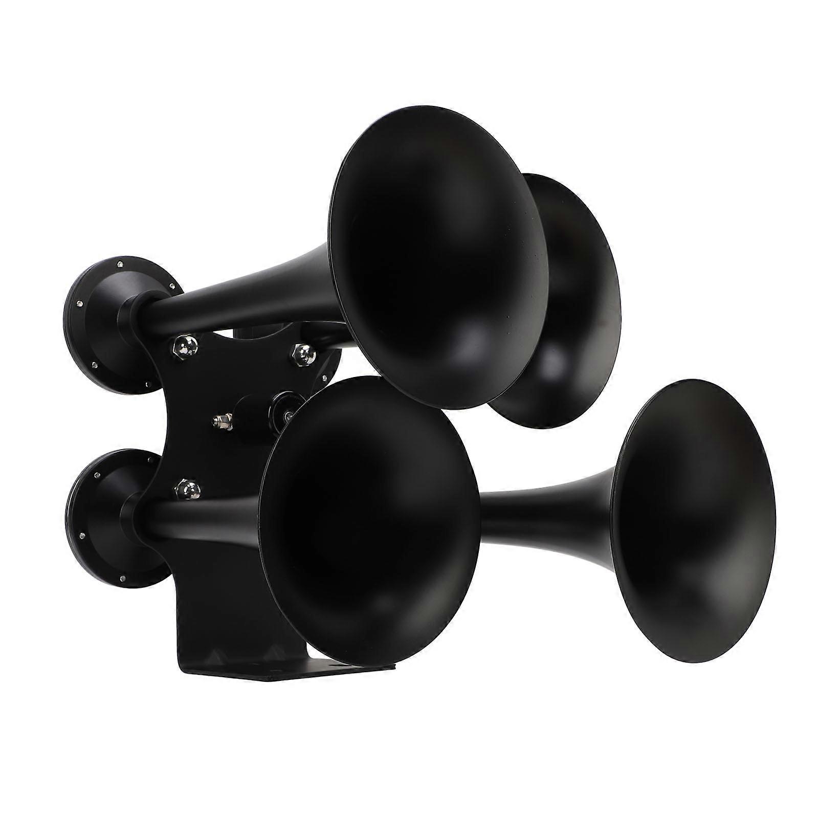 1、Chrome Metal: The truck horn is made from metal and chrome plated to ensure stability, reliability, and can withstand long periods of use and high frequency of operation in a variety of environmental condition. 2、Powerful Sound: Train horns can be as loud as 150 decibels or more. The 4 different sizes of stainless steel horns emit an loud warning that can be heard for miles. With a sound this strong, it's the most effective and safest way to alert others to your presence. 3、Effortless Installation: This truck horn is designed for simplicity in installation, allowing users to hook it up to the basic car electrical system. Plus, its easy removal feature offers the convenience of effortlessly switching it from one vehicle to another. 4、Wide Operating Range: The horn operates effectively within a range of 70 PSI to over 140 PSI. This range ensures that it consistently functions at optimal capacity, regardless of the pressure conditions. 5、Broad Applicability: This air horn is suitable for a variety of vehicles. It can be used in 12V/24V Car Trucks, Boats, Lorries, and virtually all other types of automobiles.