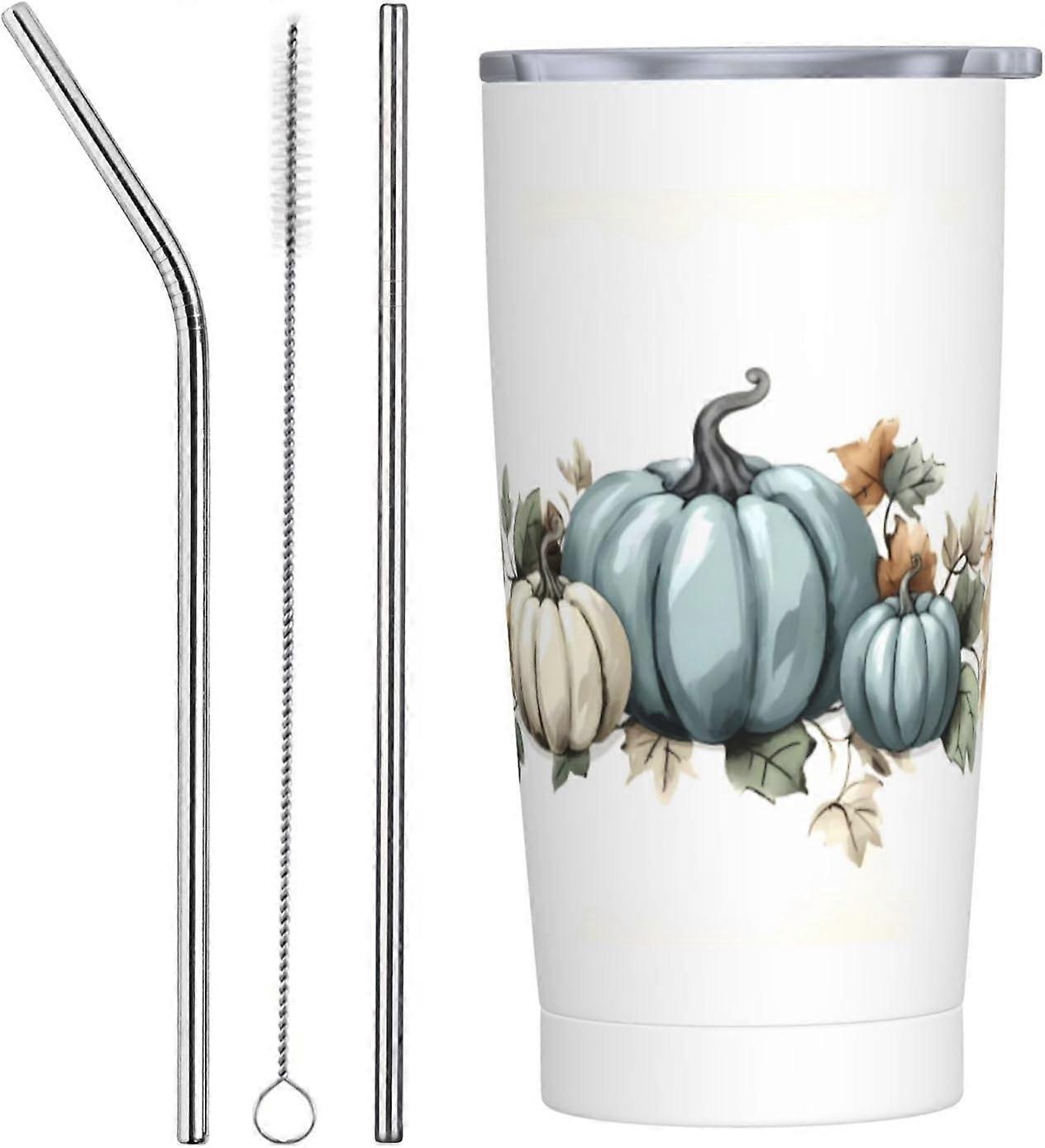 Blue Pumpkin and Leaves 20 oz Tumbler with Lids and Straws Stainless Steel Vacuum Coffee Mug for Car Home Office Outdoor Travel