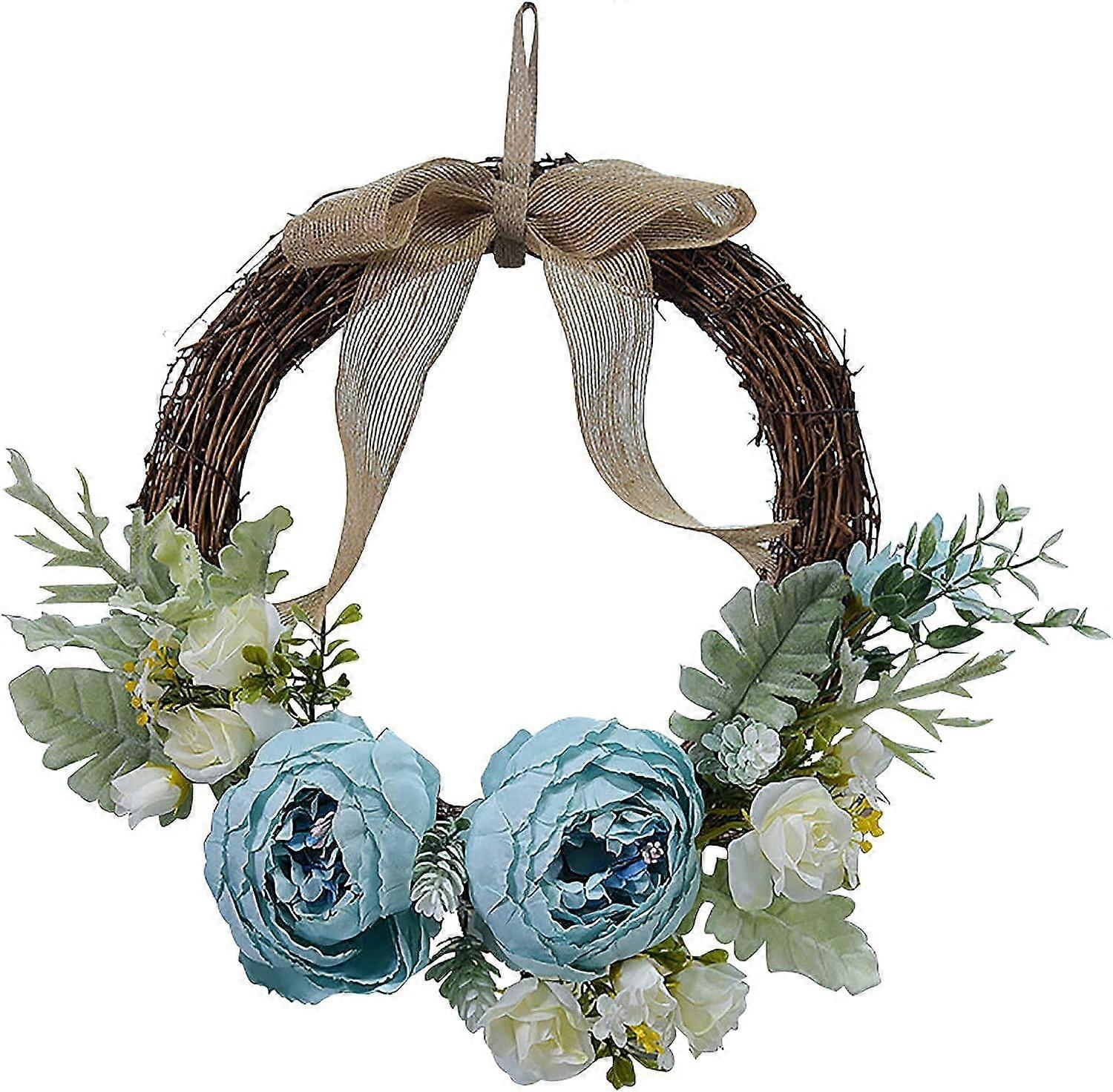 Blue Door Wreath 10" Fade Resistant Artificial Peony Spring Summer Decorative Hanging Wreath for Front Door, Wall or Window
