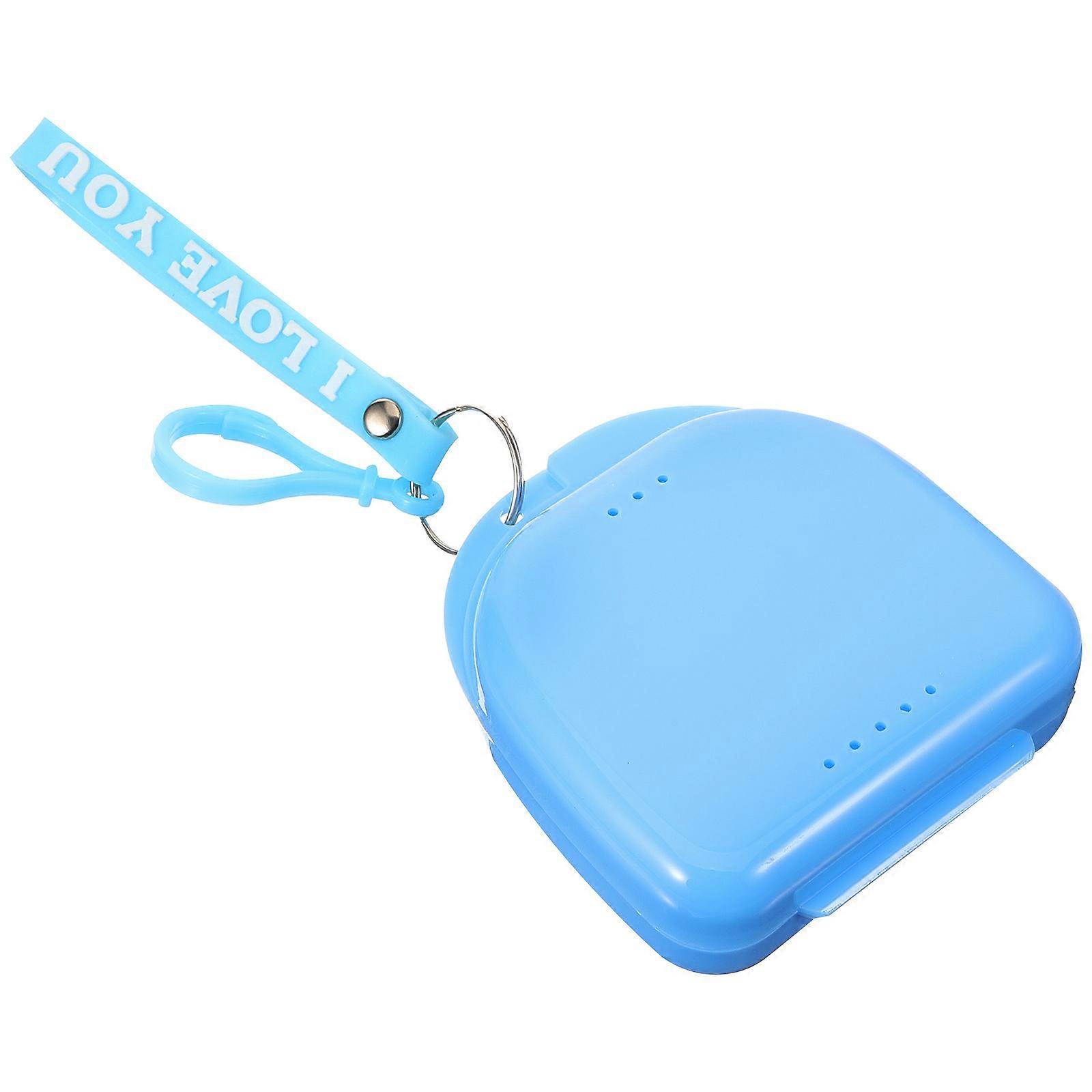 Blue Plastic Denture Container Retainer Holder for Storage Lightweight Portable Design 3.5x2.5 Inches