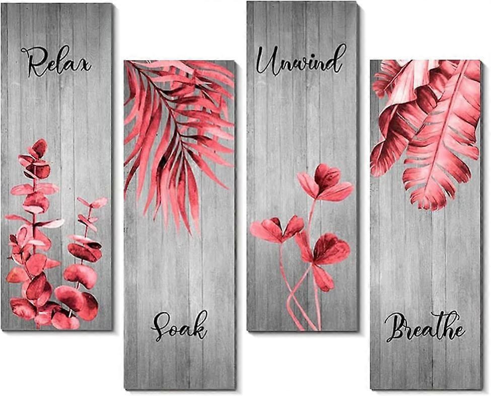 Blue Wall Art 4 Pieces Relax Soak Unwind Breathe Sign Bathroom Wall Art Print Set, Wood Plaque Hanging Bathroom Wall Decor, Small 4 x 12 Inch x4pcs