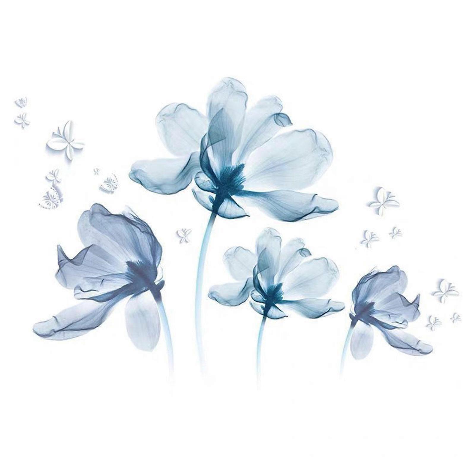 Blue Flowers Wall Sticker DIY Floral Wall Art for Bedroom Sofa Backdrop Home