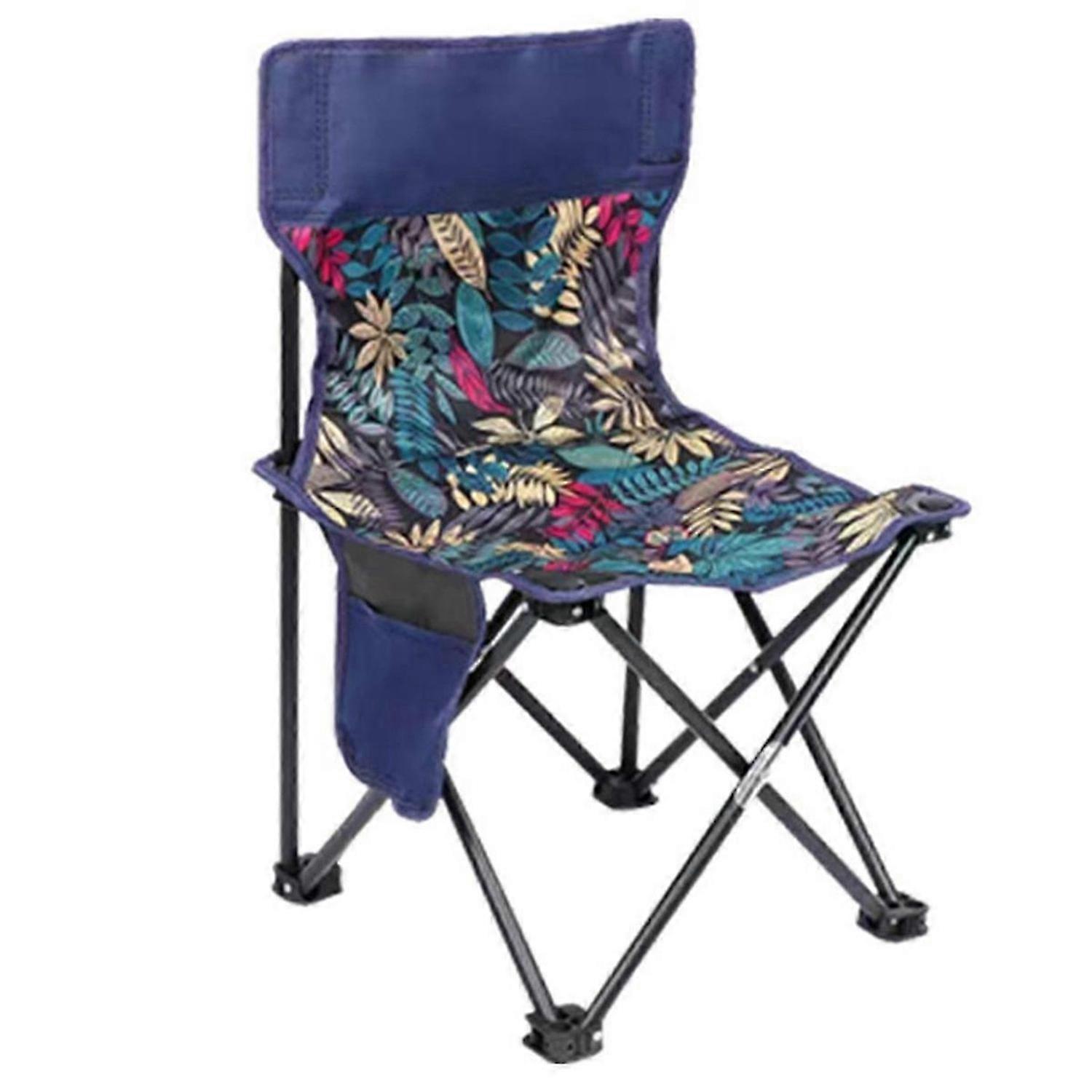 Blue leaf pattern Small outdoor folding chair, camping picnic chair