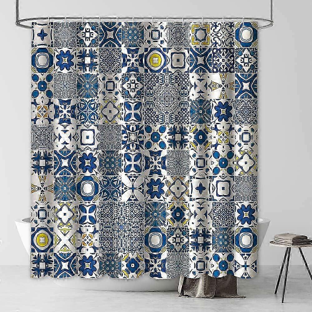 Blue and Yellow Tiles Shower Curtain Modern Retro Textures Morocco Mosaic 2025