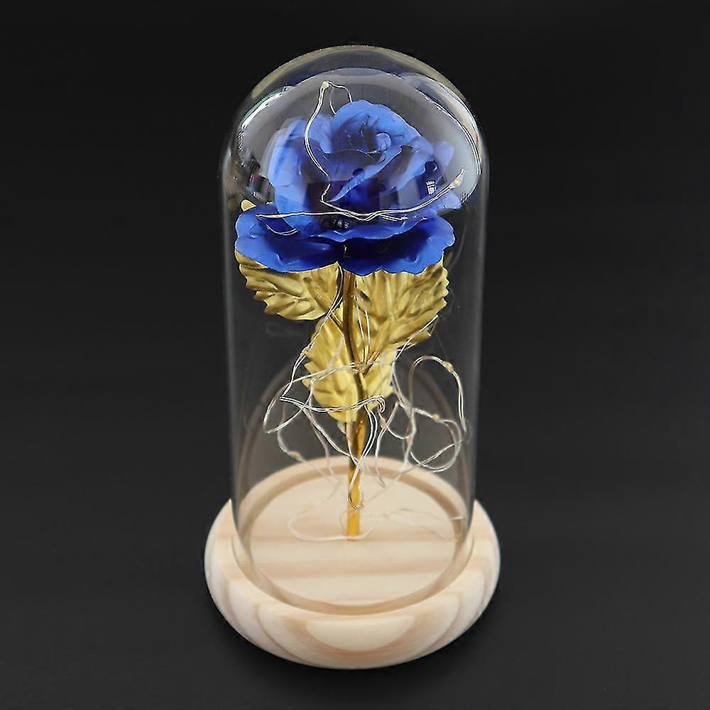 blue:24k Eternal Rose For Women/wife/grandma/girlfriend For Her Rose Flower Artificial Roses In Glass Dome With Led Light Strip On Mother's Day Valent