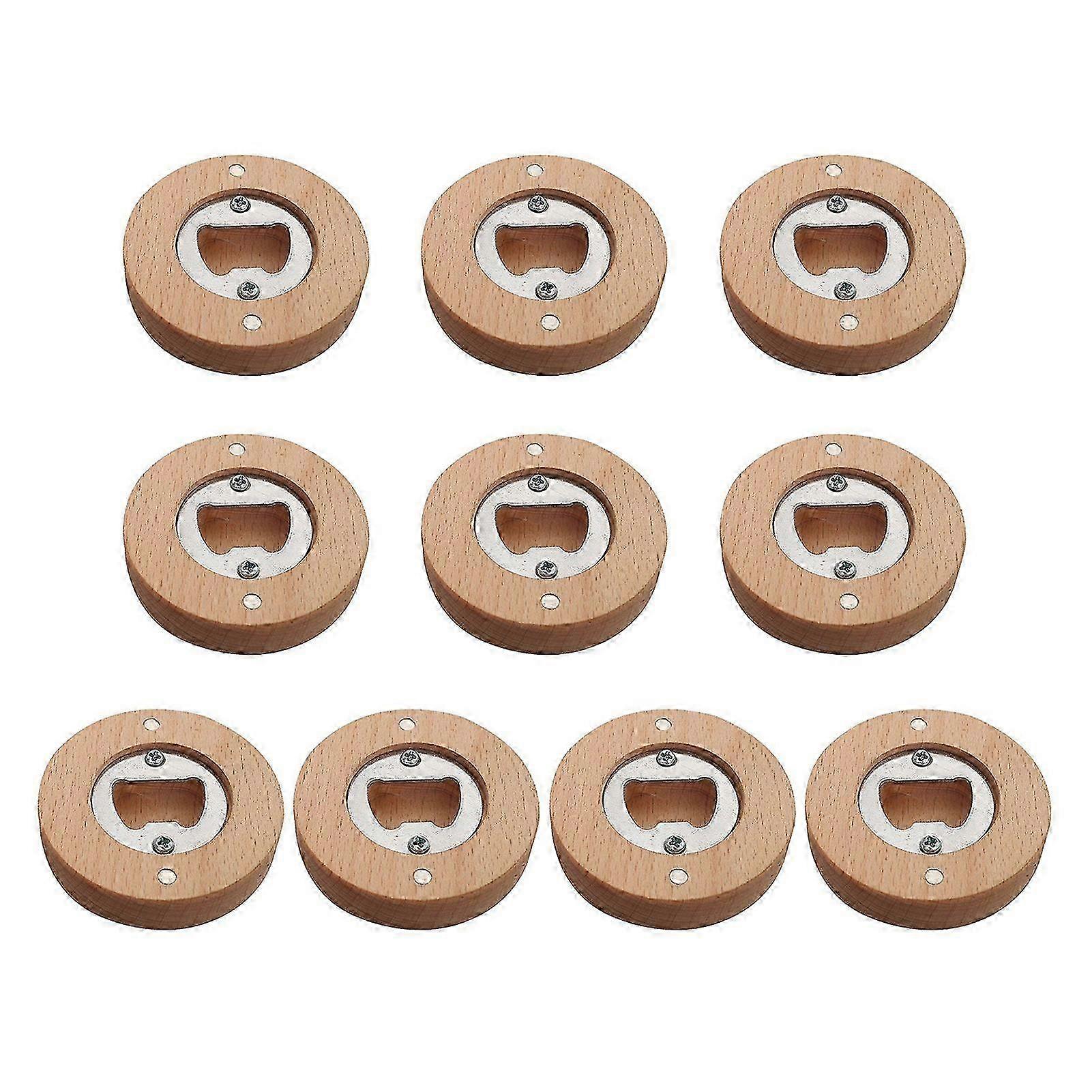 Qinghai 10Pcs Bamboo Bottle Opener Magnets 2.4x2.4" Fridge Decor Beer Opener Kitchen Tool