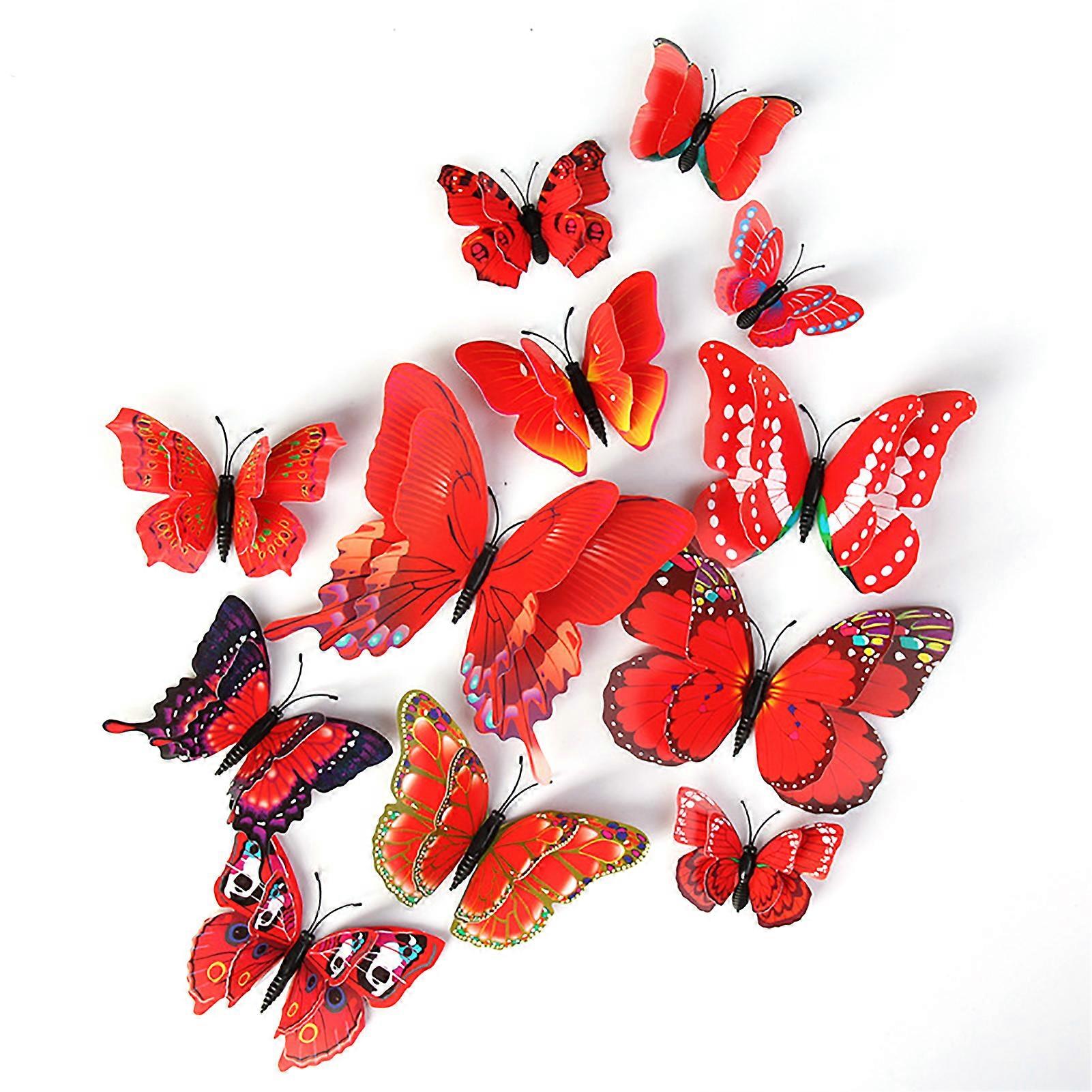 QingHai 12Pcs Fridge Magnets Vibrant Color Double-layered Butterfly Wall Stickers for Home Party Decorations