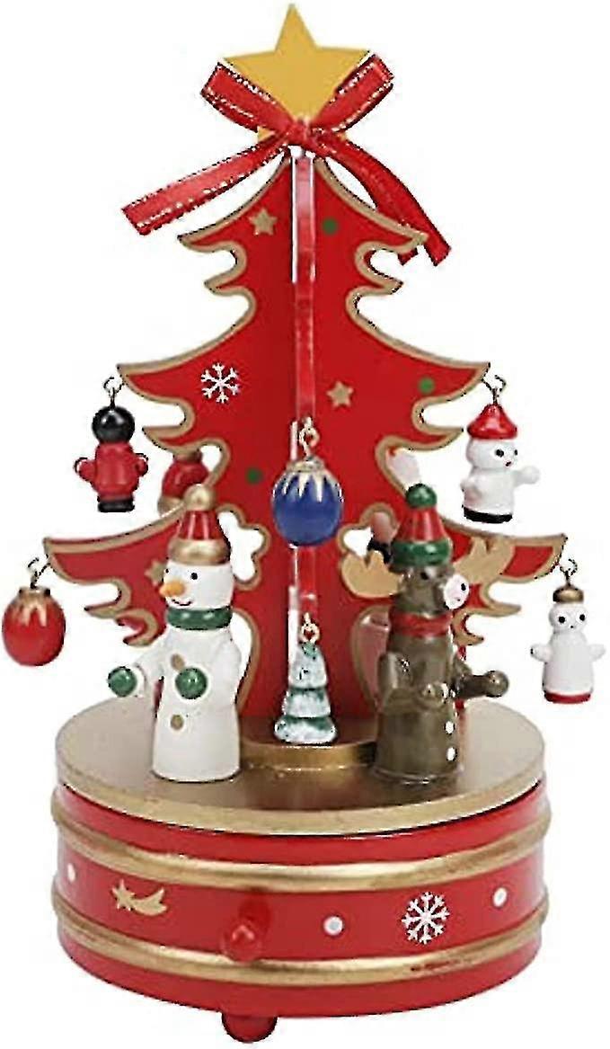 Funny Carousel Music Box Figurines Wooden Christmas Tree Merry-go-round Rotating Windup Musical Gift