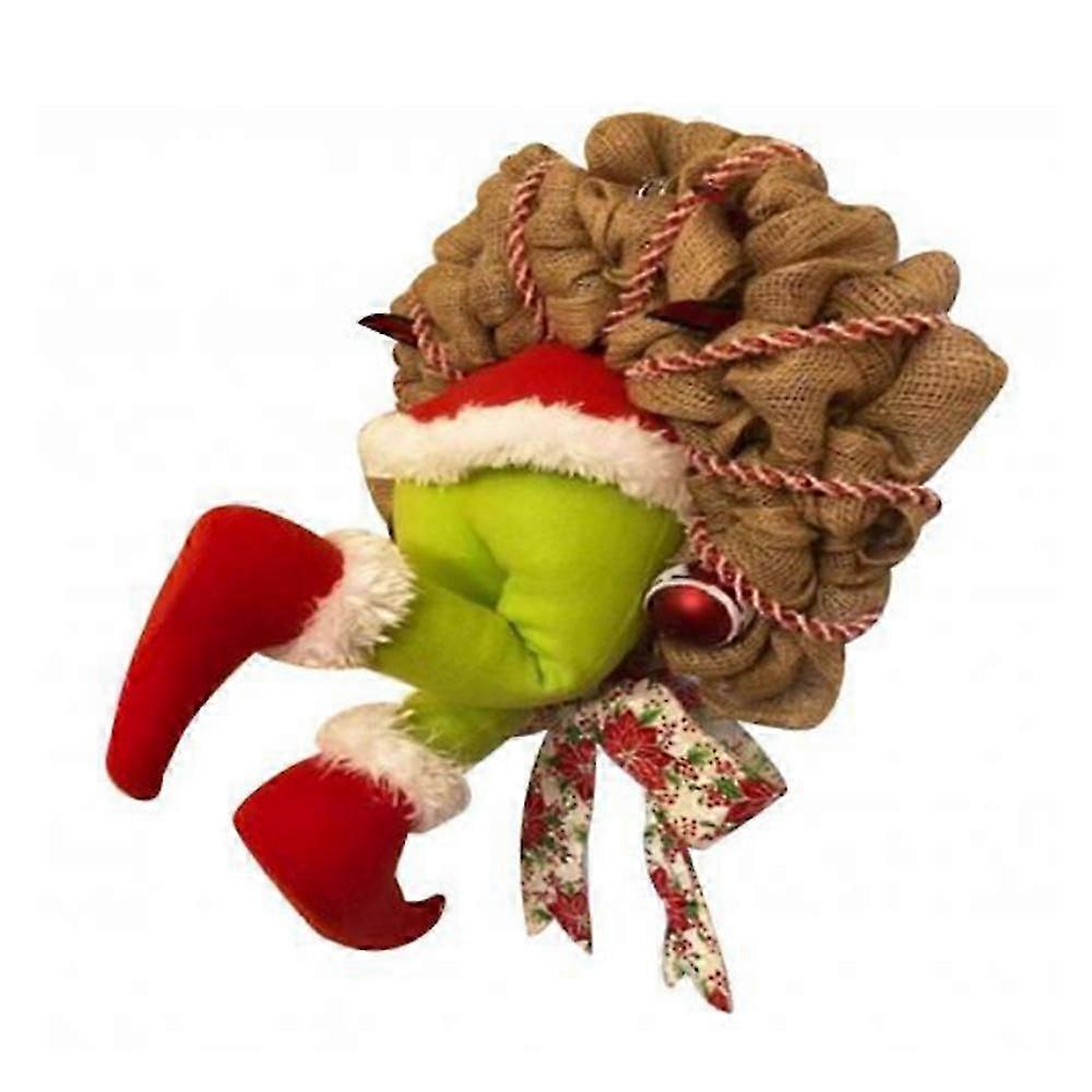 Funny Christmas Thief Leg Wreath Burlap Stealer Design Front Door Hanging Garland Hoop Tree Wall Ornament Decor