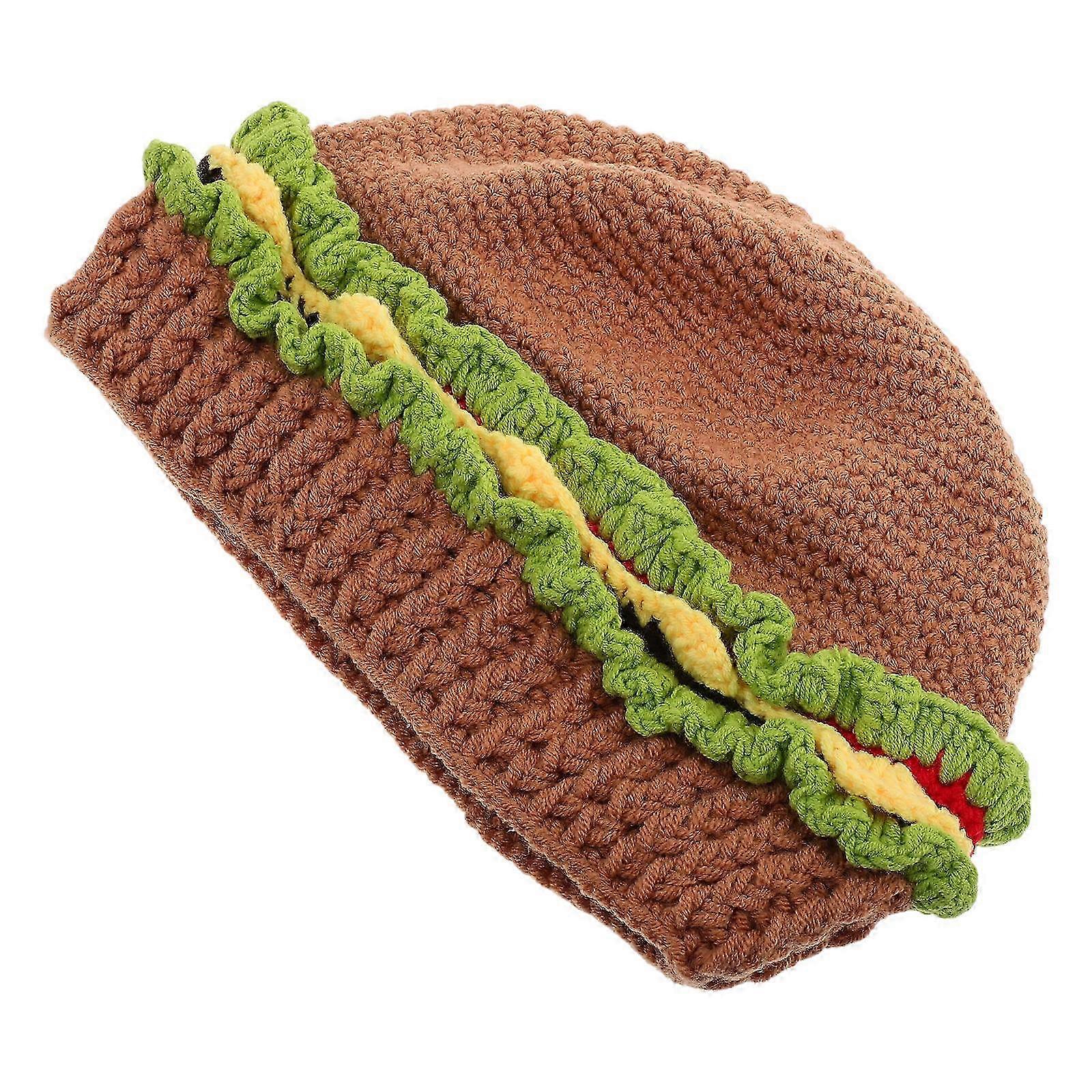 Funny Hamburger Hat, Cute Crochet Bread Beanie for Adults, Warm Knitted Cap for Cosplay, Party, and Outdoor Use, Soft Material for Comfort