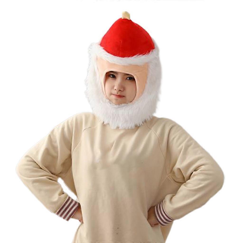 Funny Full Beard Santa Claus for Head Plush Hat for Doll Stuffed Toys Fuzzy Warm Hood Beanie Earflap Cap Christmas Holiday Cosplay Party Photo Props