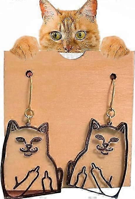 Funny Middle Finger Cat Earrings, The Middle Finger Cats Ear Studs, Cartoon Wacky Cat Earrings for Women Girl Jewelry Gift