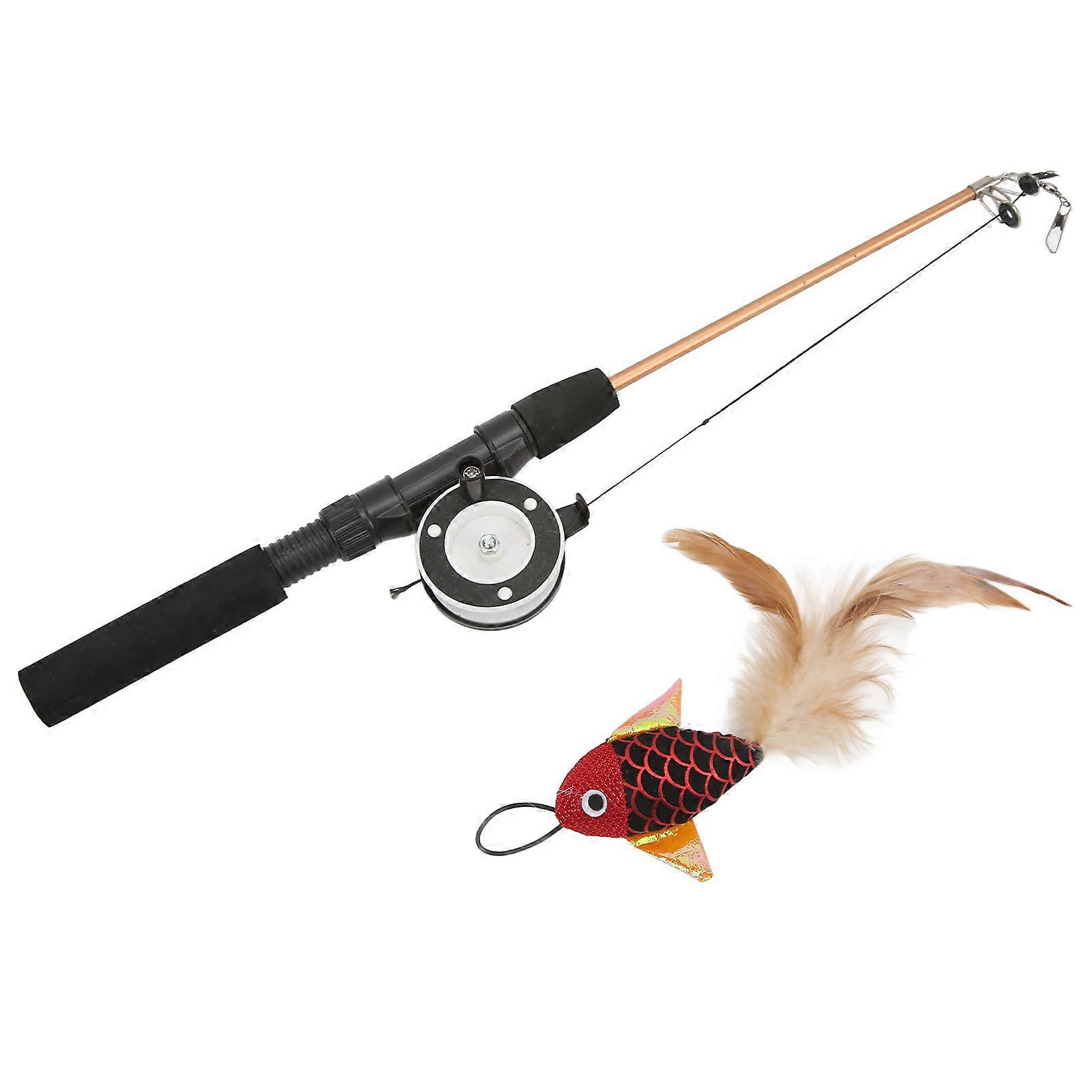Funny Cat Stick Realistic Flexible Interactive Pulley Telescopic Fishing Rod Cat Toy for Cats(Red Fish Fishing Rod )