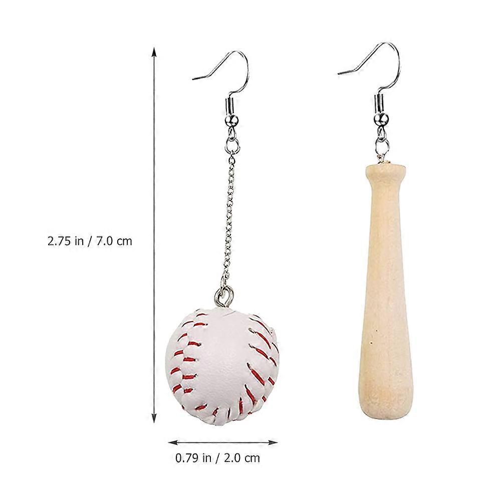 Funny Baseball Earrings Wooden Asymmetric Earrings for Decor 2Pairs