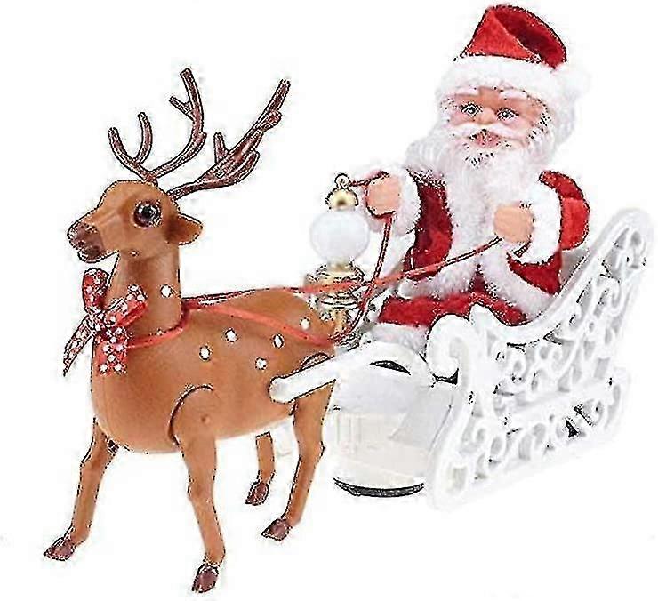 Funny Electric Santa Claus Super Toy Elk Sleigh Deer Car Toy Santa Claus Doll Toy Hanging Ornament Tree Indoor Outdoor Christmas Holiday Home Decor(1s