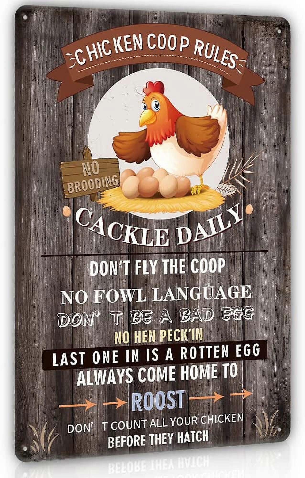 Funny Chicken Coop Rules Sign, Retro Vintage Rustic Notice Plaque Chicken Signs, Chicken Coop Decor Sign for Funny Outdoor Farmhouse, 12X8 Inches