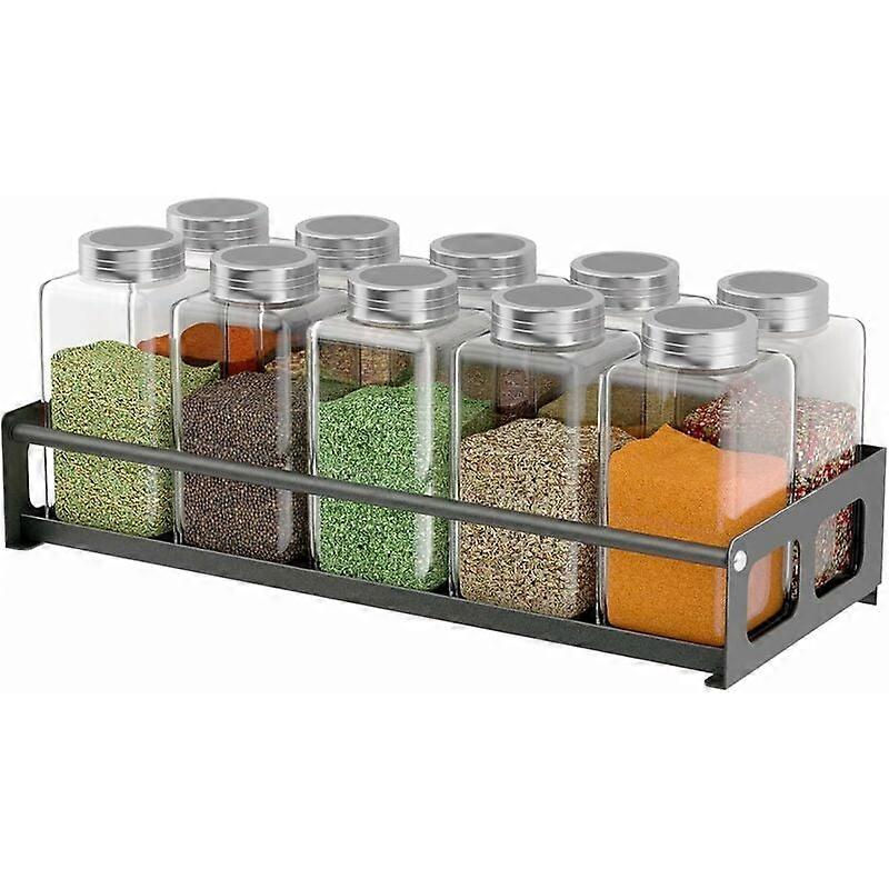 Innovative Adhesive Design Magnetic Spice Rack, Elegant Black High-Quality Metal Organizer For Versatile Kitchen Storage, Maximize Space With