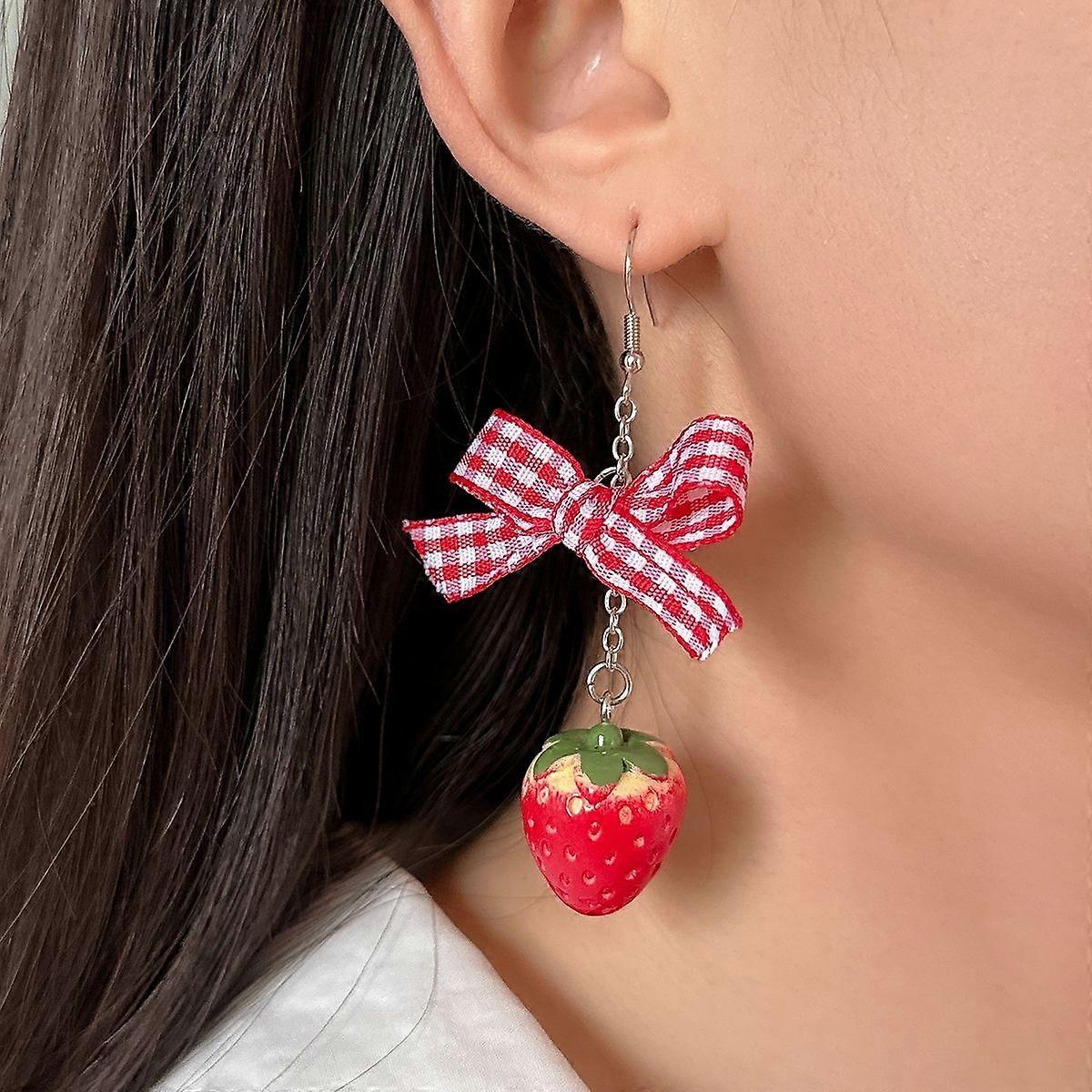 Korean Cute Bowknot Raspberry Acrylic Dangle Earrings For Women Romantic Charm Jewelry Y2K Fashion