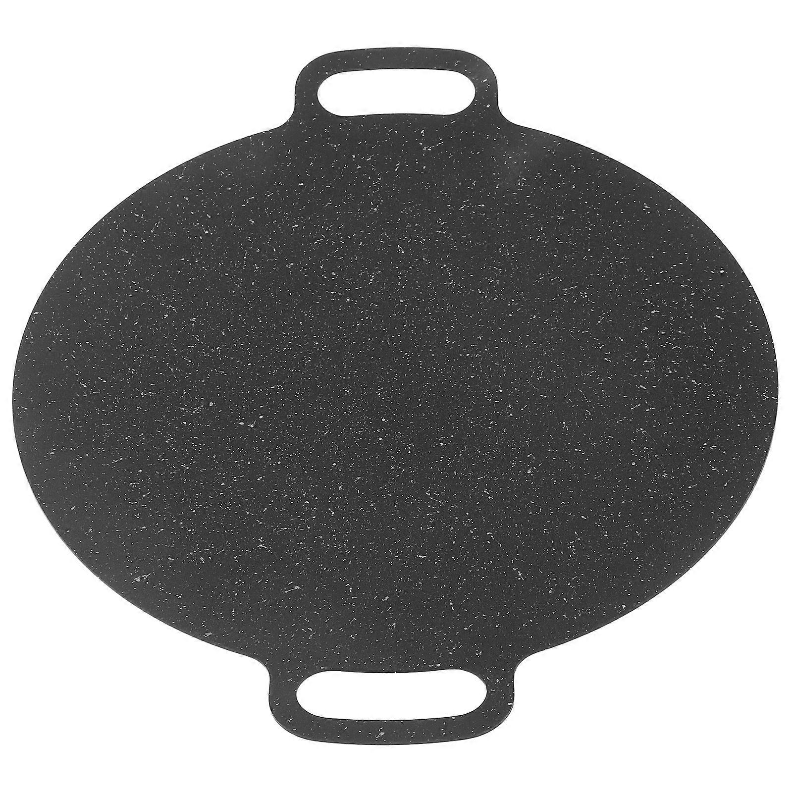 Korean Grill Pan Round Non Stick Iron Medical Stone Coating Good Insulation BBQ Griddle with Oxford Storage Bag 25cm/9.8in