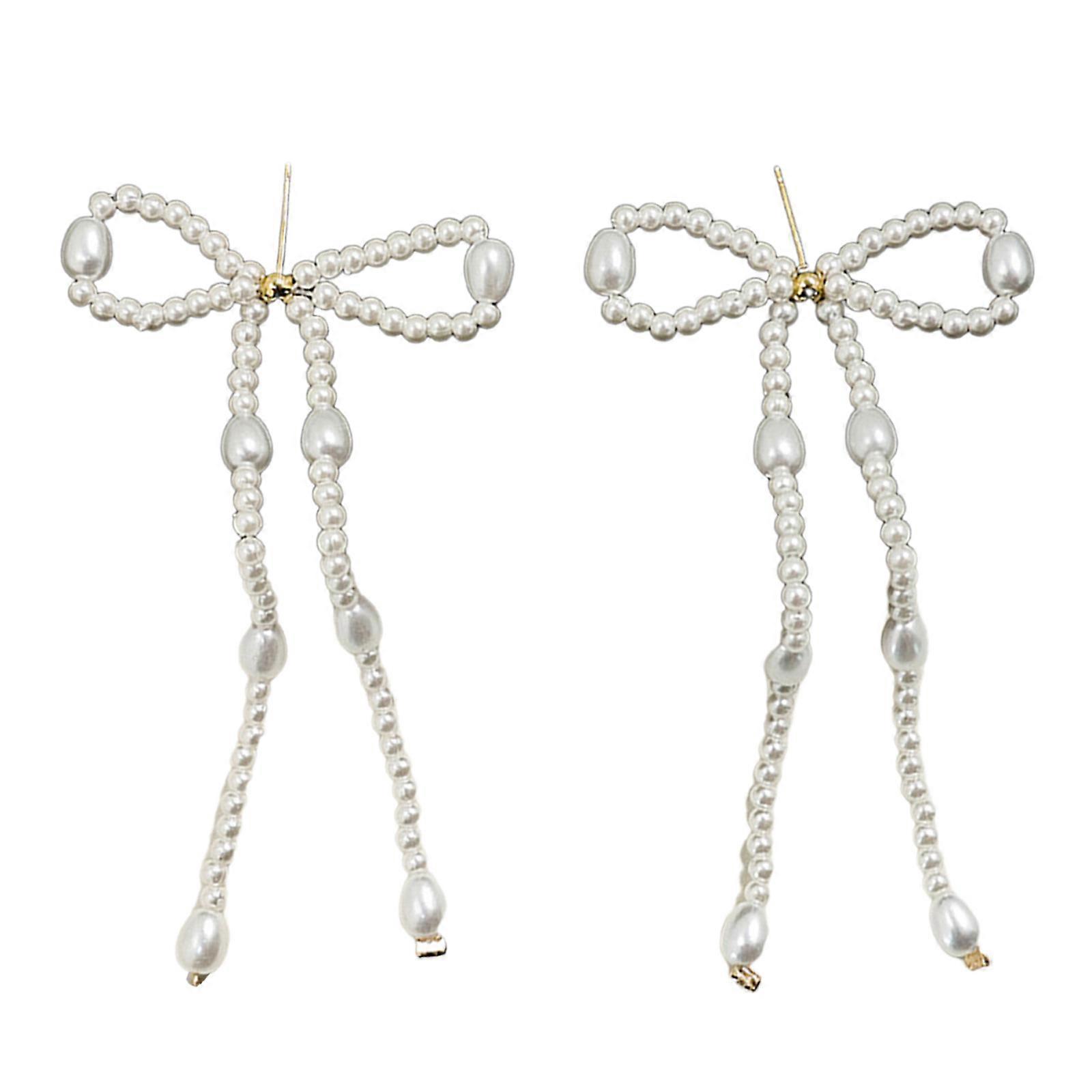 Korean Tassels Earrings Handmade Pearl Beaded Bowknot Earring for Women Wedding Fashion Jewelry Temperament Dangle Ear