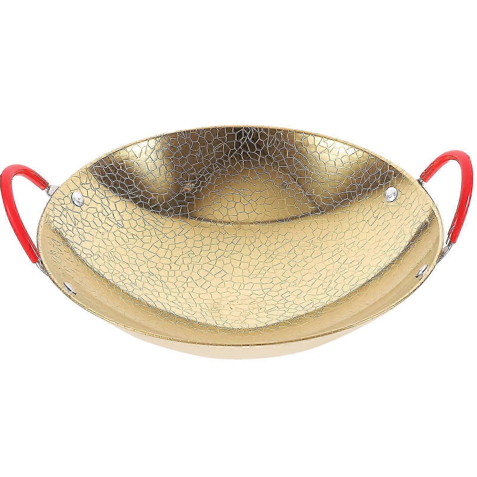 Korean Ramen Pot Stainless Steel Pan with Handles Chef Wok 25.8X22.5X9CM Golden