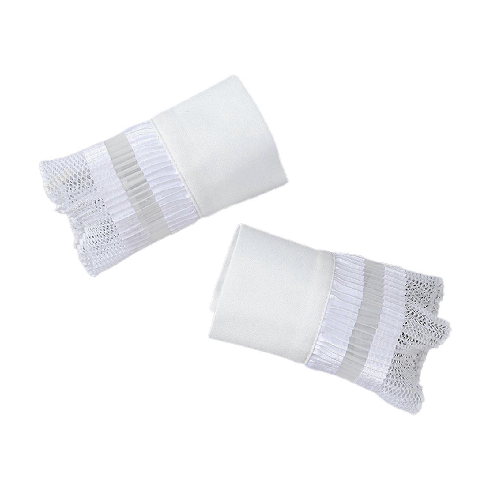 Korean Women Hollow Out Mesh Net Horn Cuffs Wrinkled See-Through Lace Detachable Fake Sleeves Sweater Decorative Clothing Wristband Bracelet White