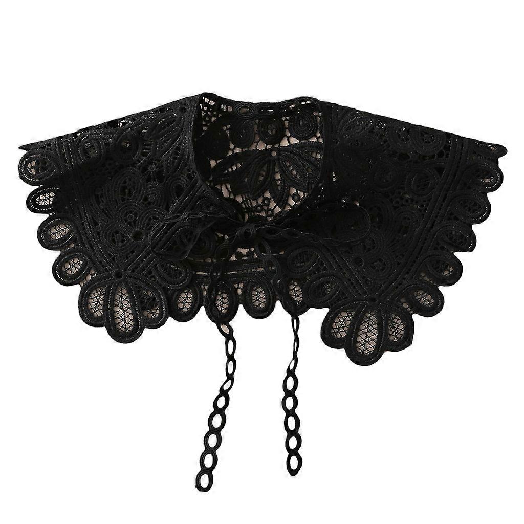 Korean Style Lace-Up Chain Bowknot Fake Collar Shawl Wrap Elegant Hollow Out Floral Lace Necklace Half Shirt Decorative Mini Poncho Capelet for Women