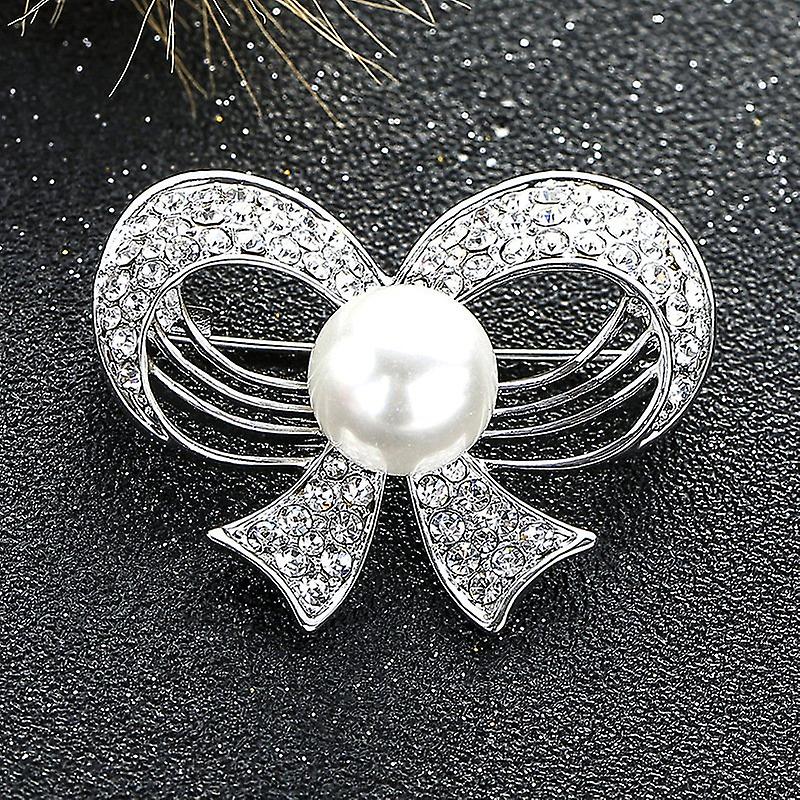 Korean Style Bowknot Round Pearl Brooch Temperament Ladies Alloy Accessories