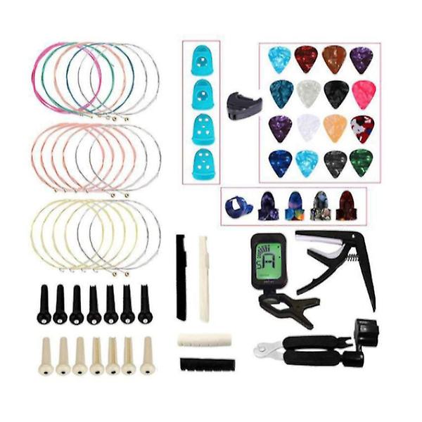Style A With 65Pcs Guitar Accessories Including 18Pcs Guitar Strings 16Pcs Guitar Picks 5Pcs Thumb Fingerpicks 4Pcs Guitar Finger Protector 1Pc Guitar Capo 1Pc Guitar Tuner 1Pc Guitar 3 In 1 Winder 14Pcs String Nails 4Pcs String Pillows And 1Pc Pick Box.