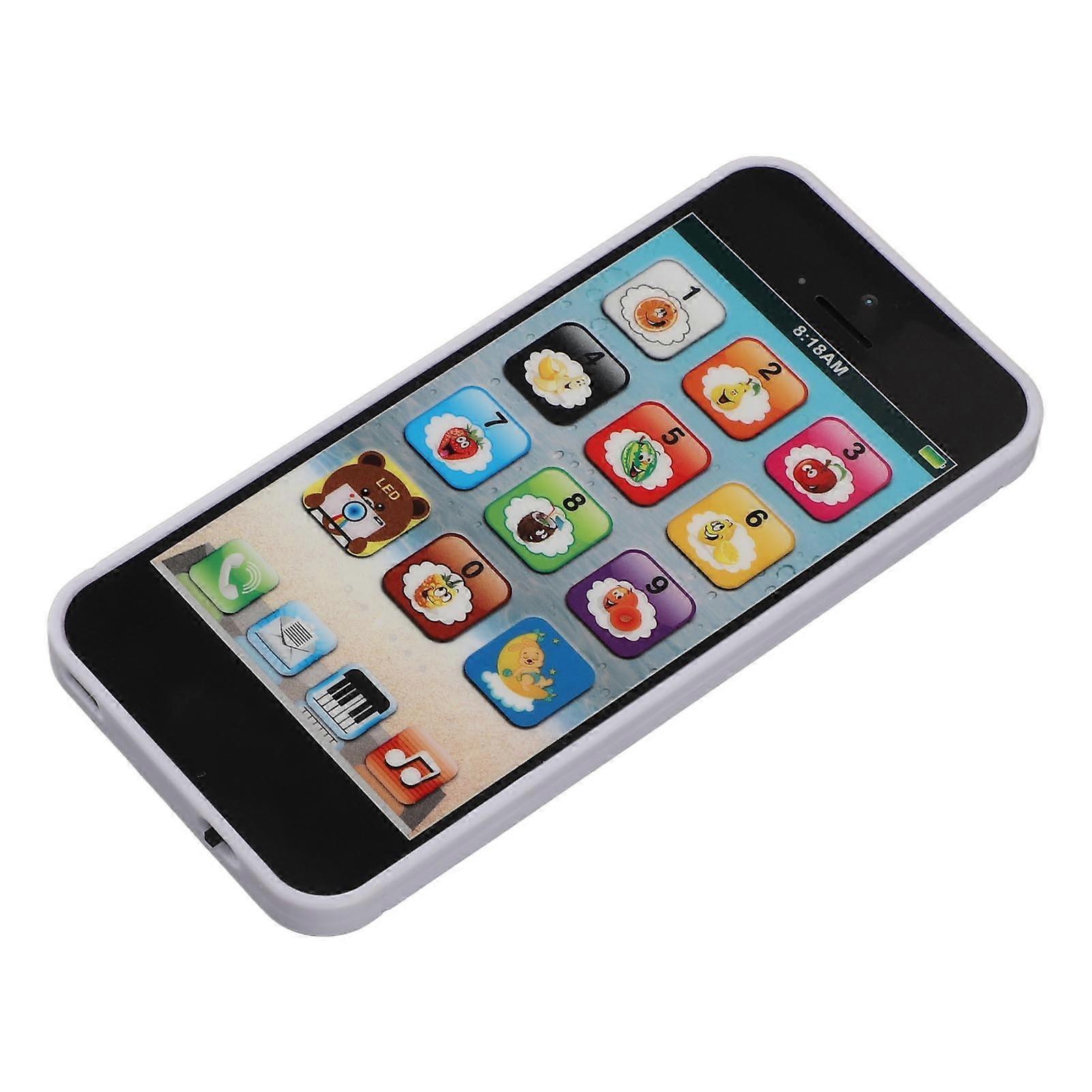 Kids Toy Smartphone With Music Player Colorful LED Lighting 8 Modes Fake Cell Phone Touchscreen Learning Play Toy with USB Cable Black