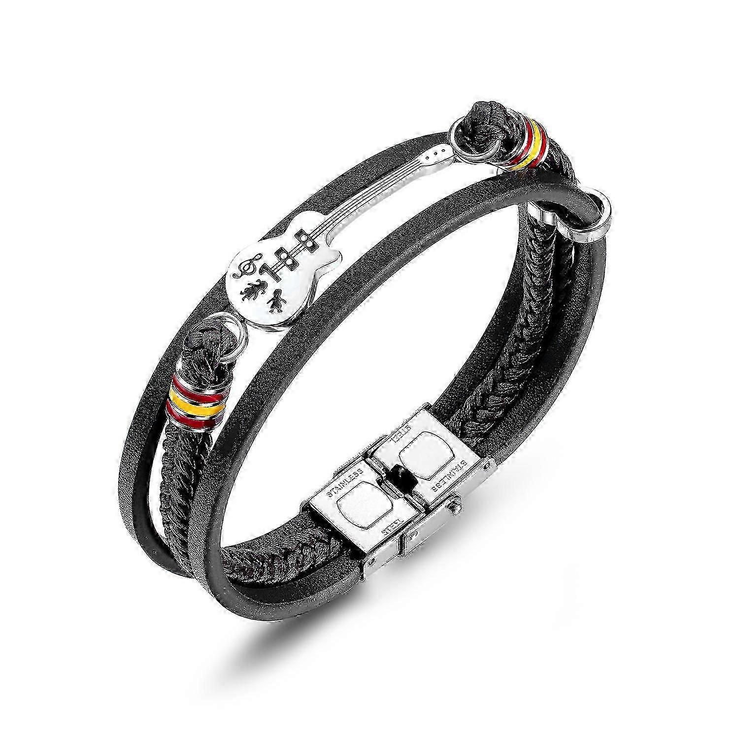 Stainless Steel Braided Multi-Layer Leather Guitar Bracelet for Music Enthusiasts